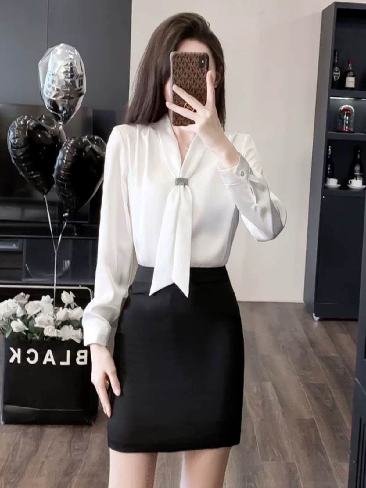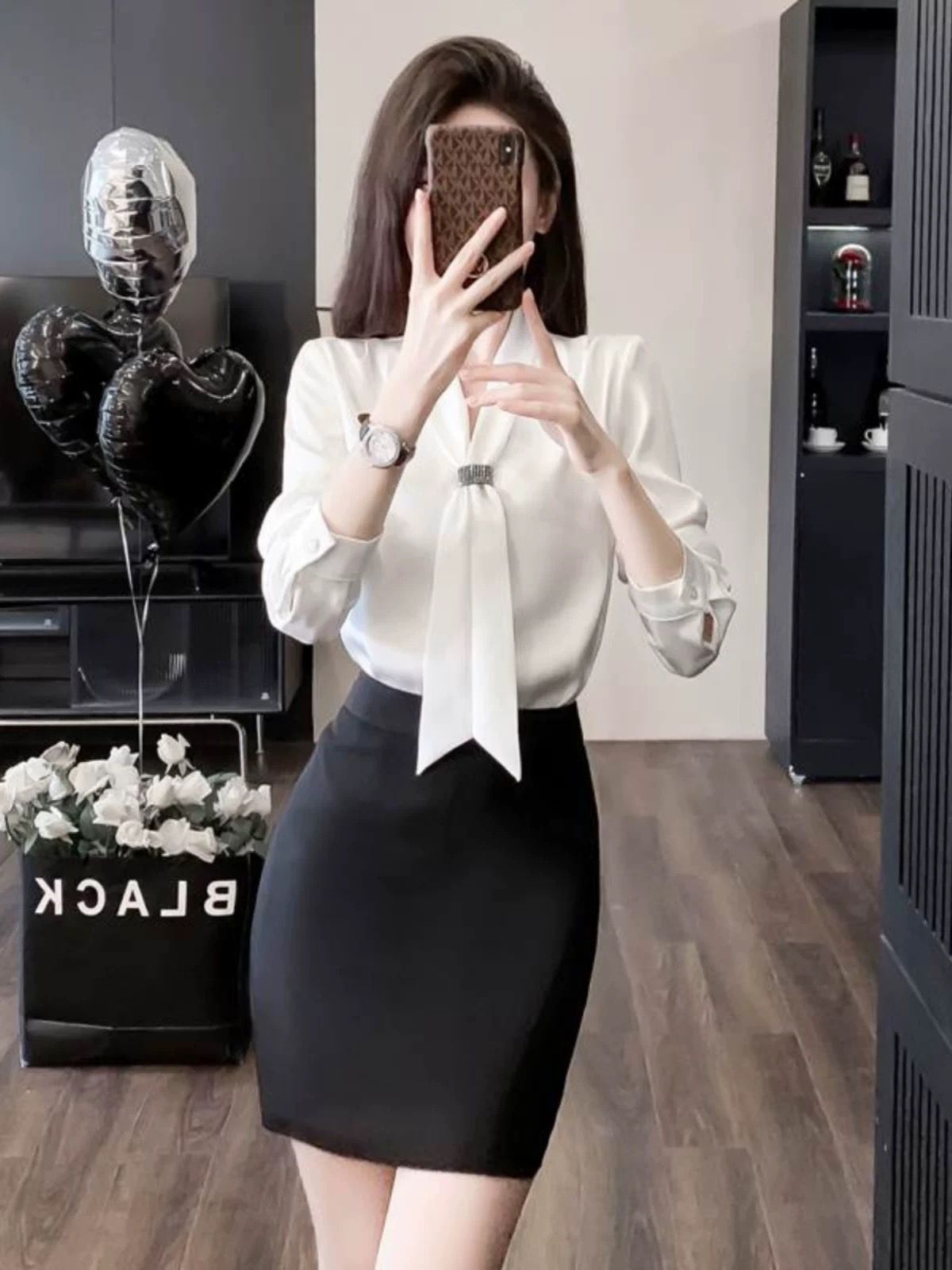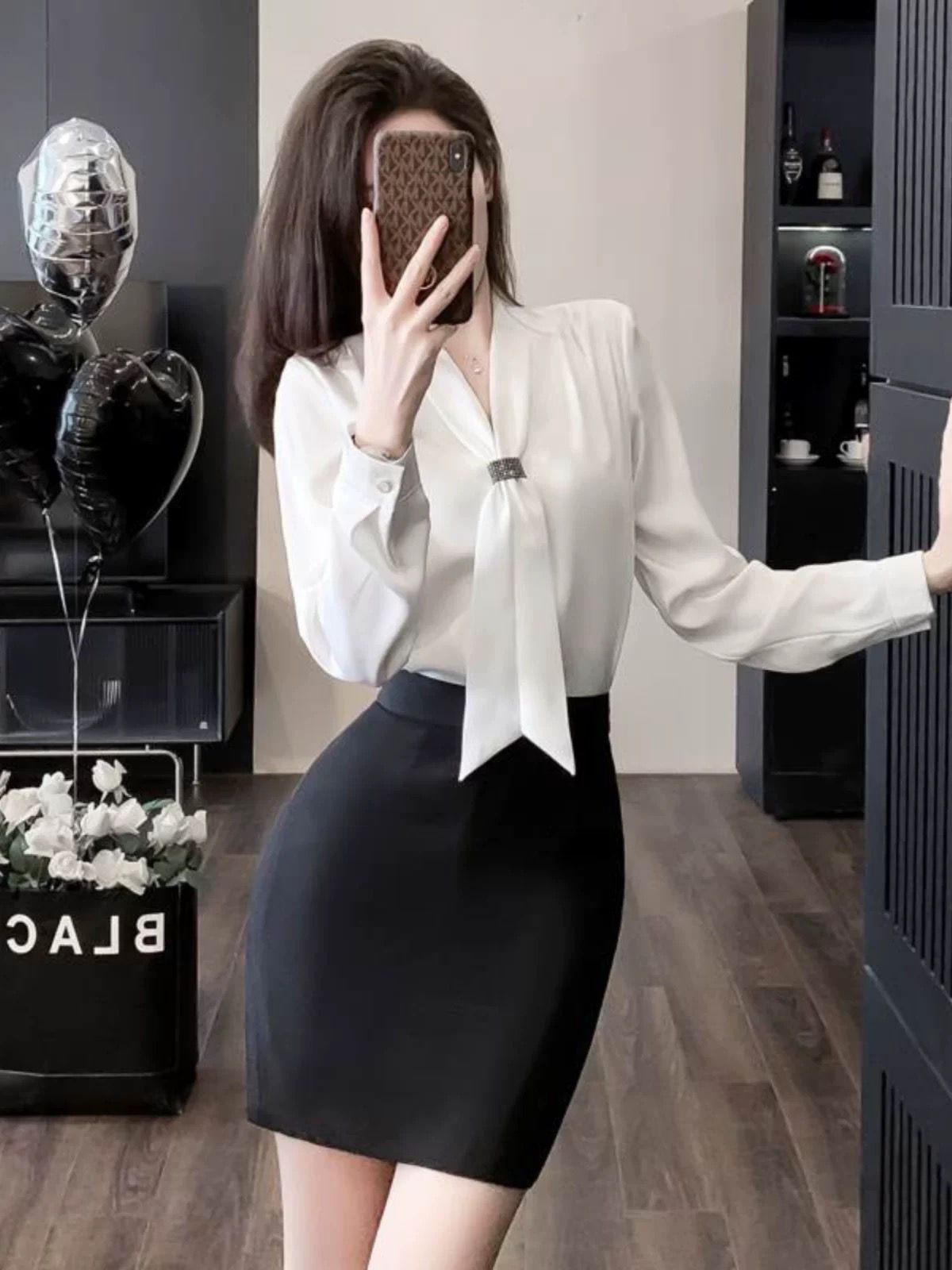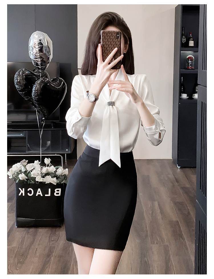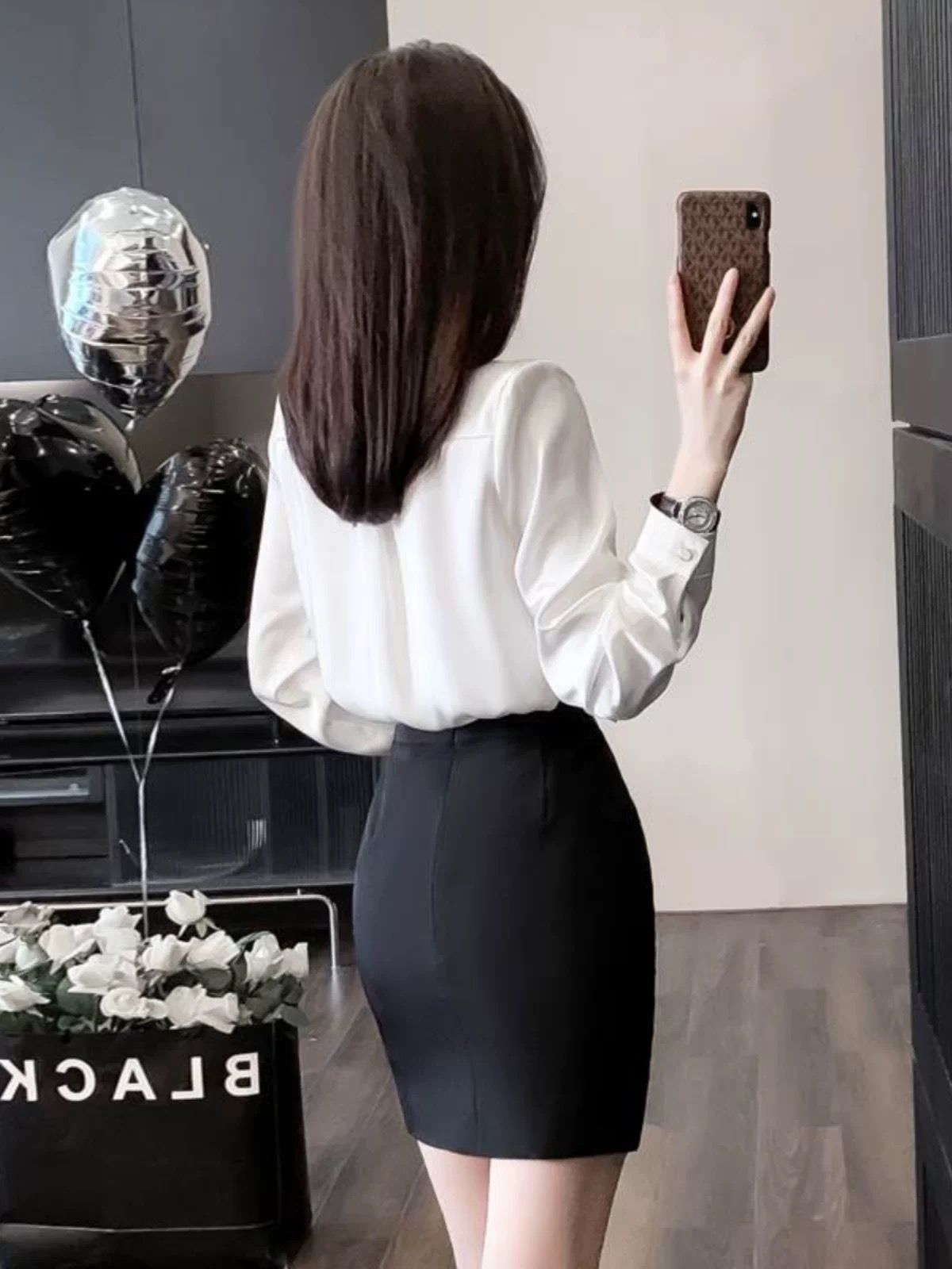 白色衬衫女夏款短袖衬衣新款美容院工作服售楼部高端职业套裙