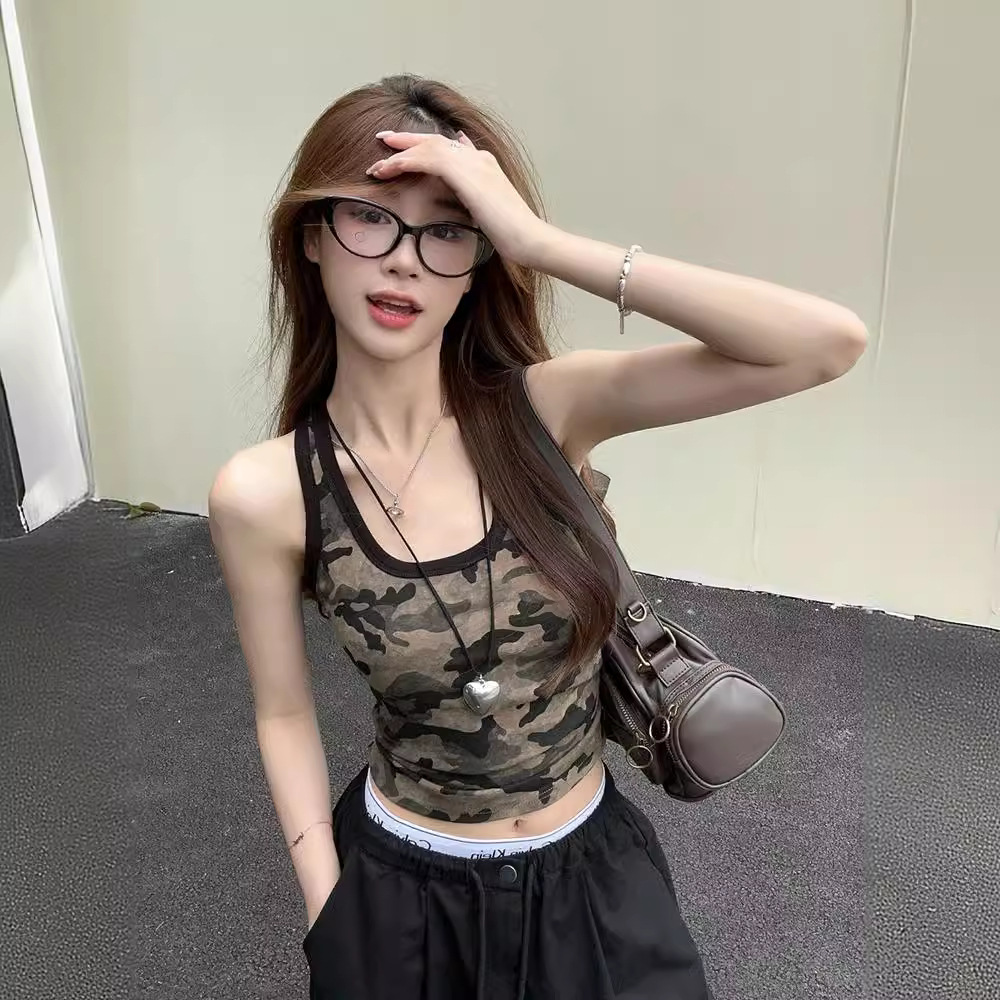 美式辣妹迷彩吊带背心女夏季新款美式辣妹短款修身外穿甜酷上衣