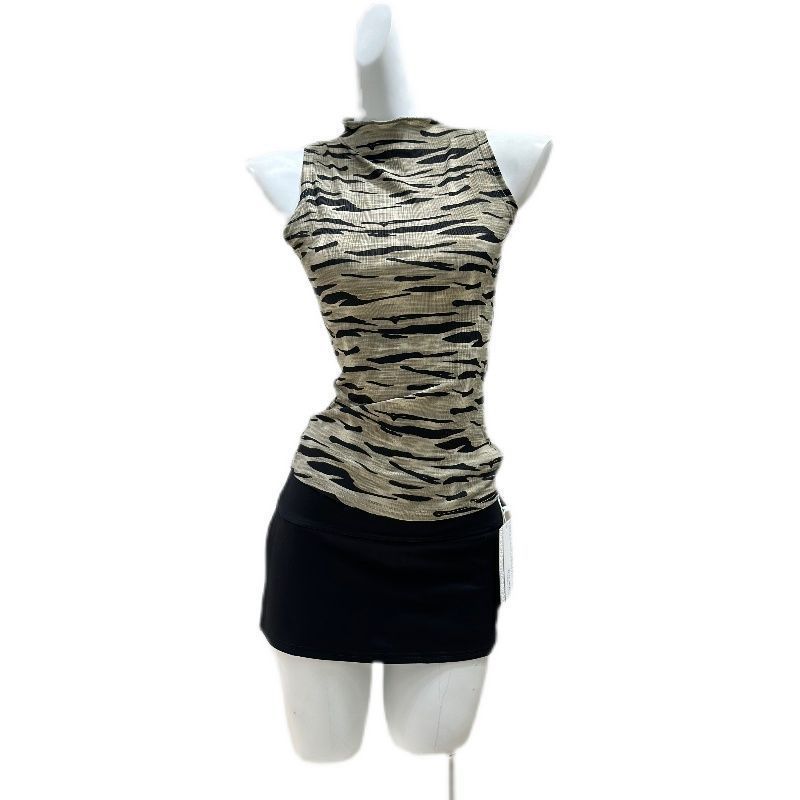 【月销10万】半高领迷彩背心女夏季修身显瘦设计感别致甜辣小上衣