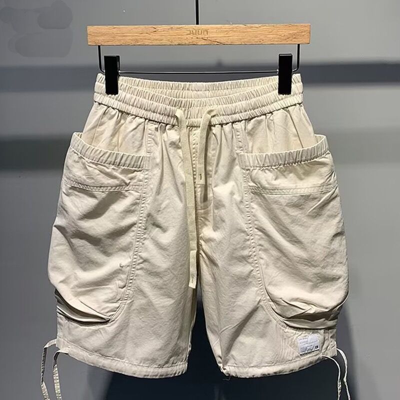 日系大口袋百搭线条抽绳工装短裤男士夏季新款纯色休闲宽松阔腿裤