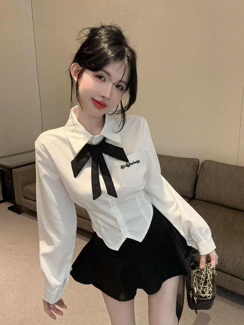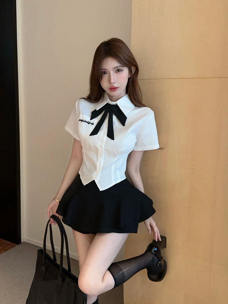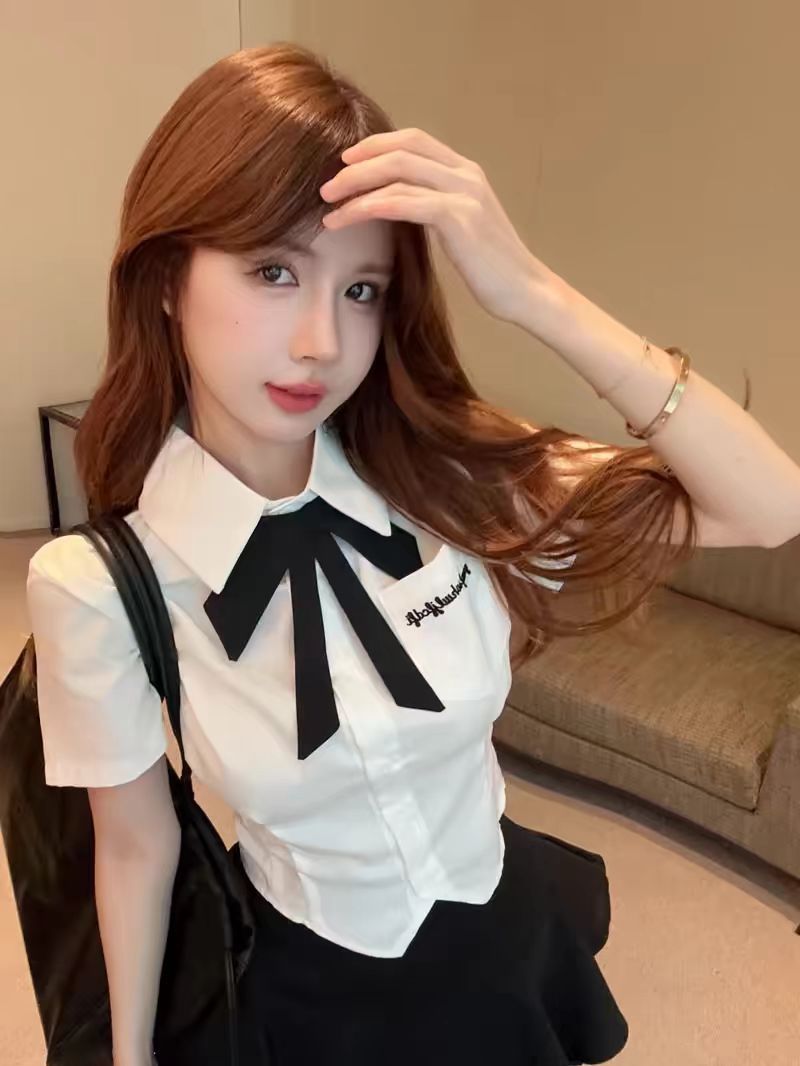 学院风辣妹减龄刺绣显瘦短袖衬衫纯欲黑色jk甜辣裙裤两件套女夏季