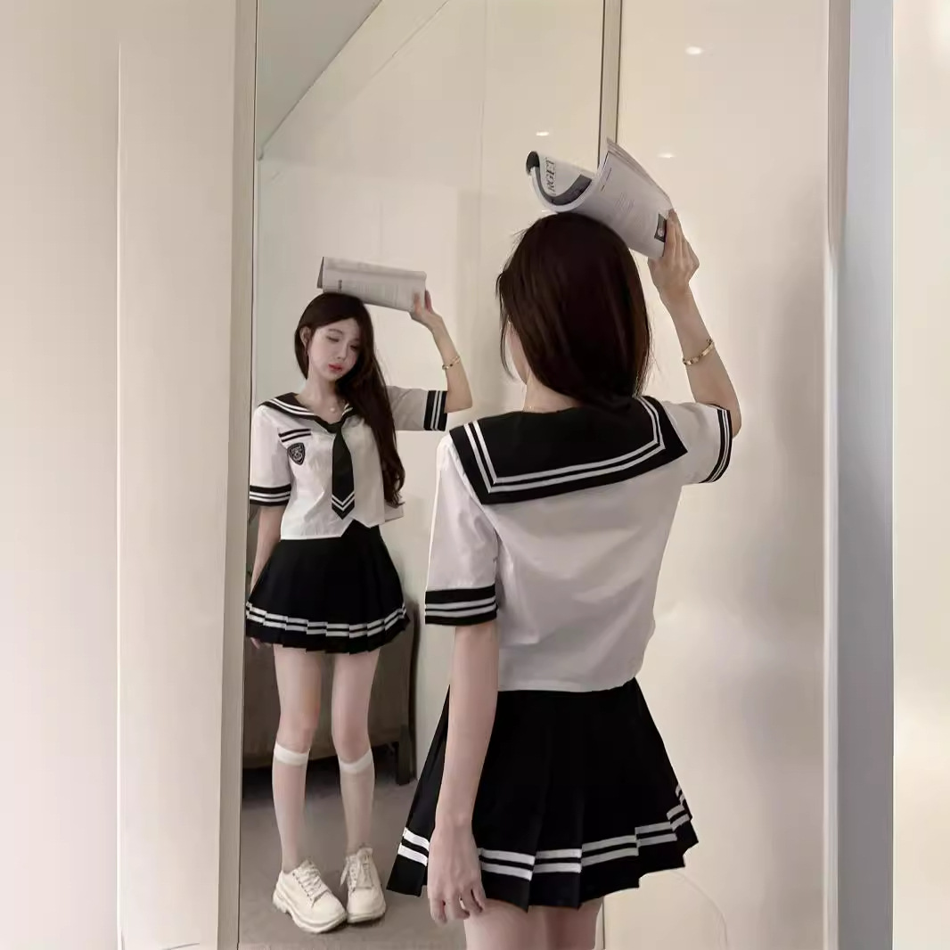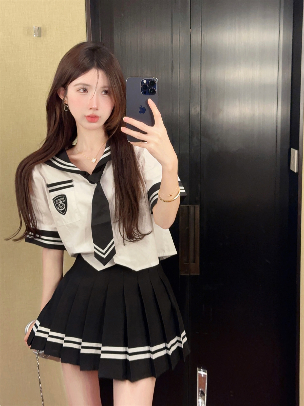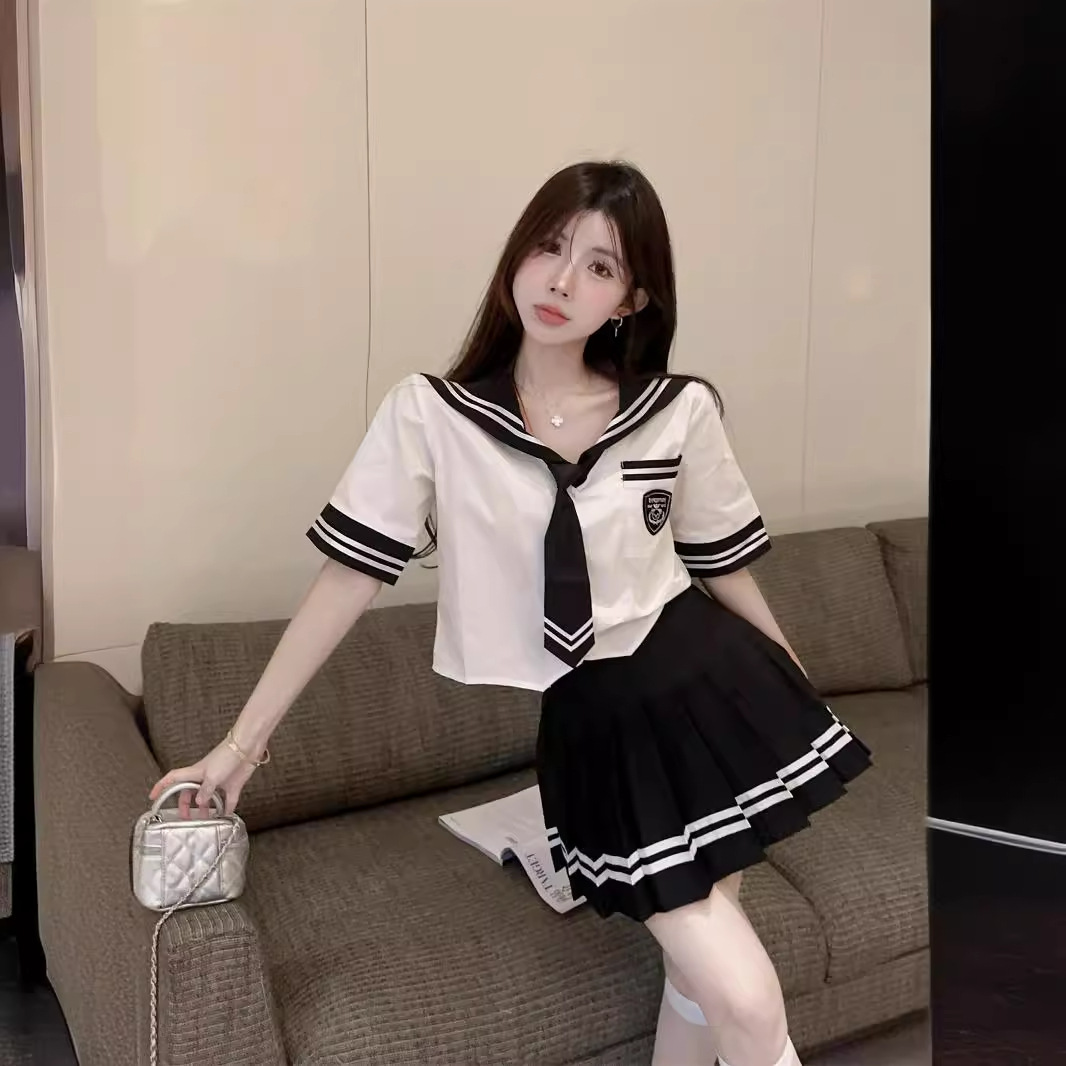 上衣领带可拆卸,裙子侧拉链,有内衬