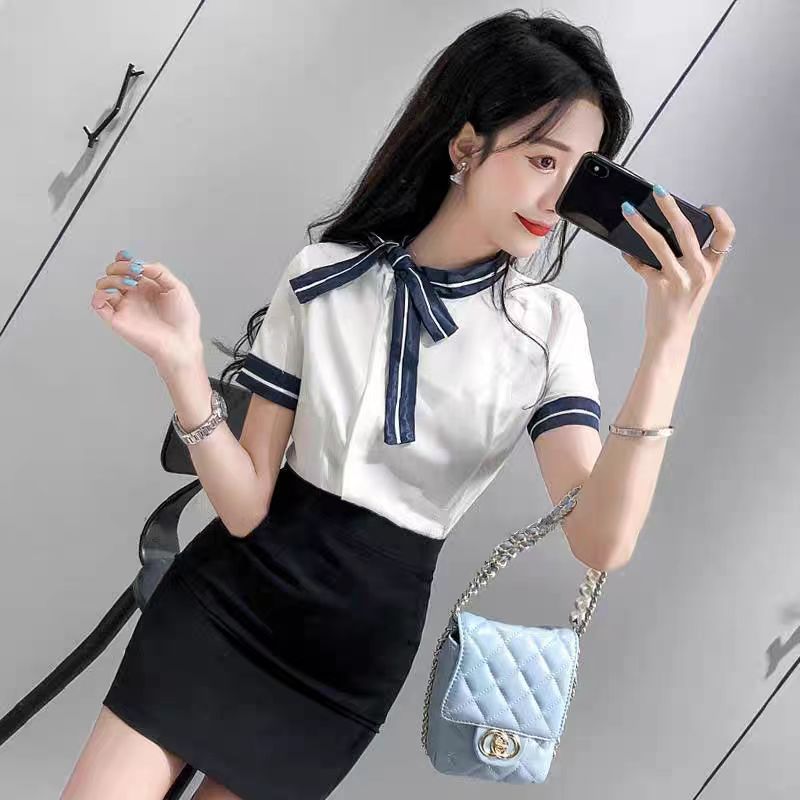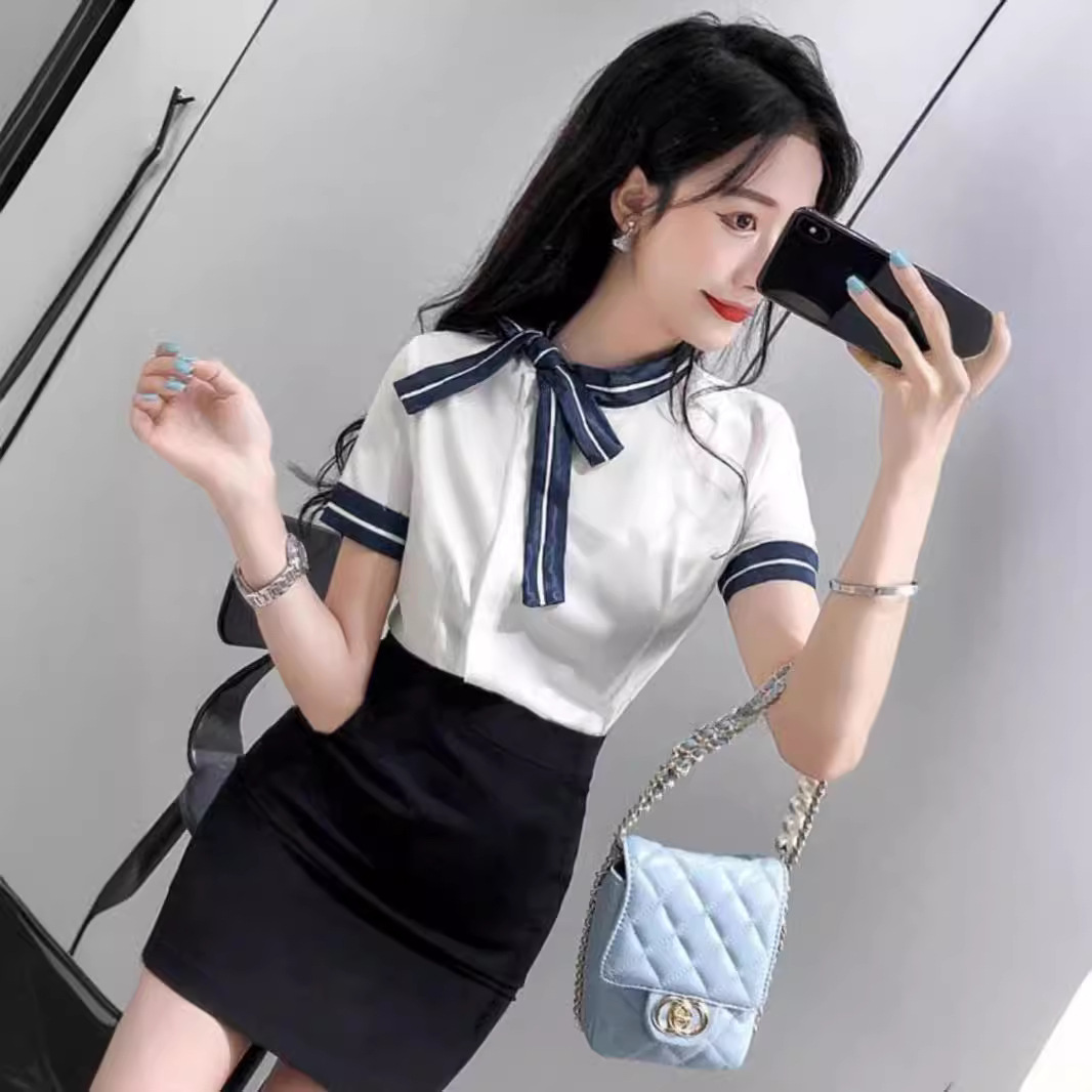 白色短袖上衣+黑色包臀裙
