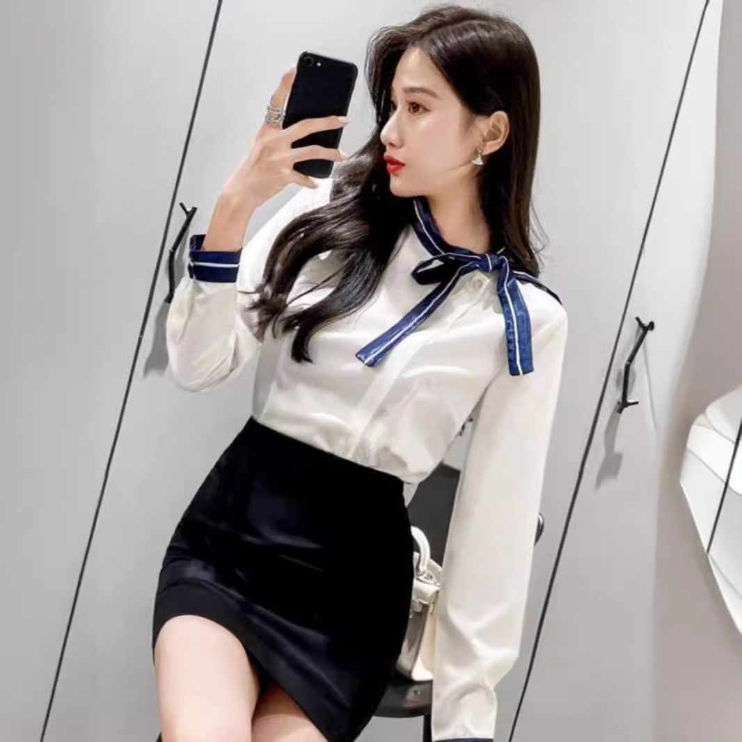 白色长袖上衣+黑色包臀裙
