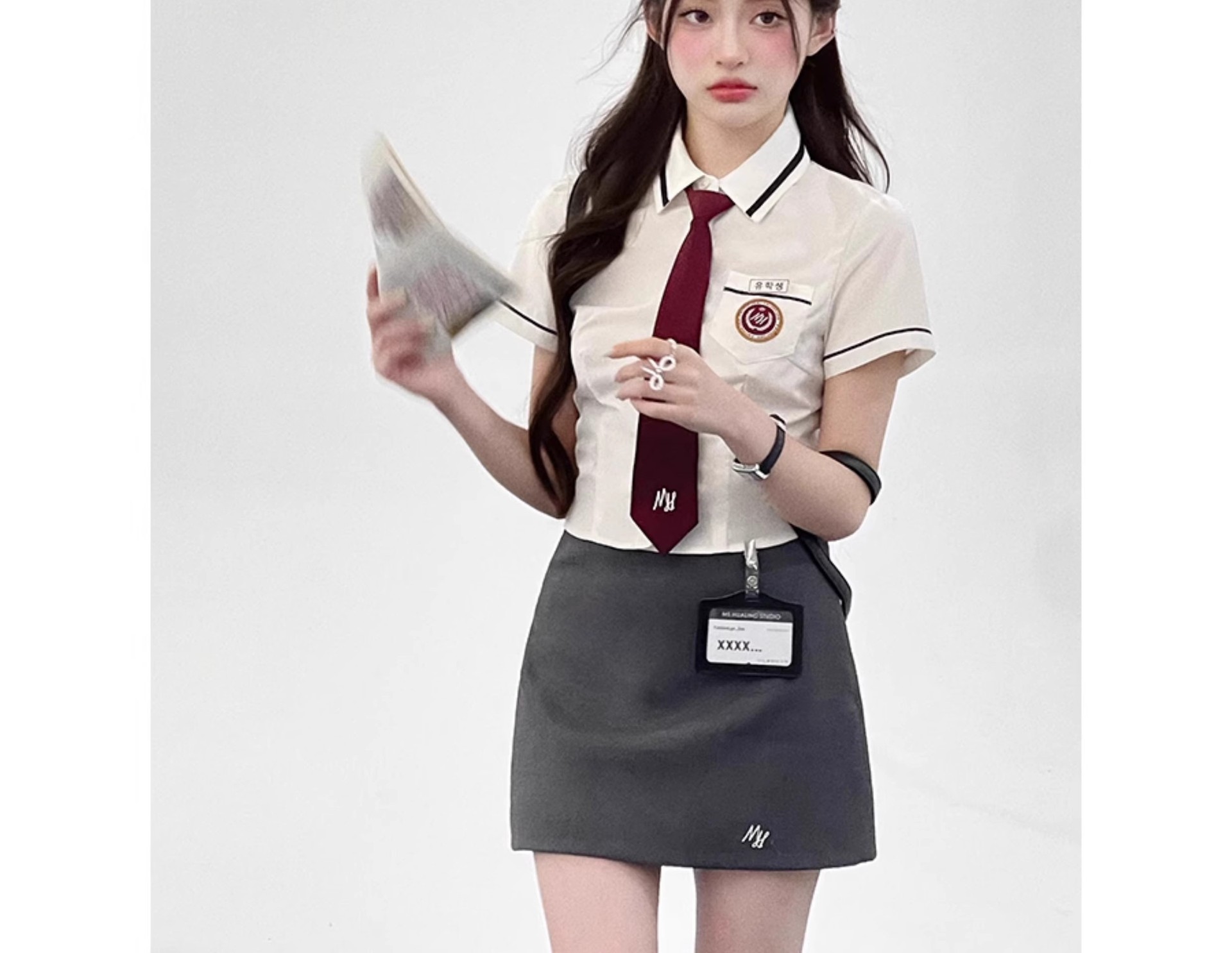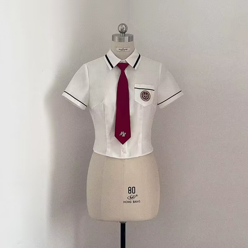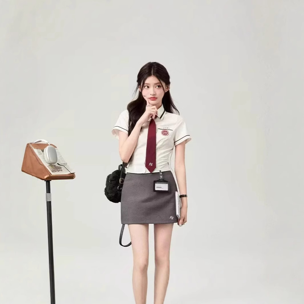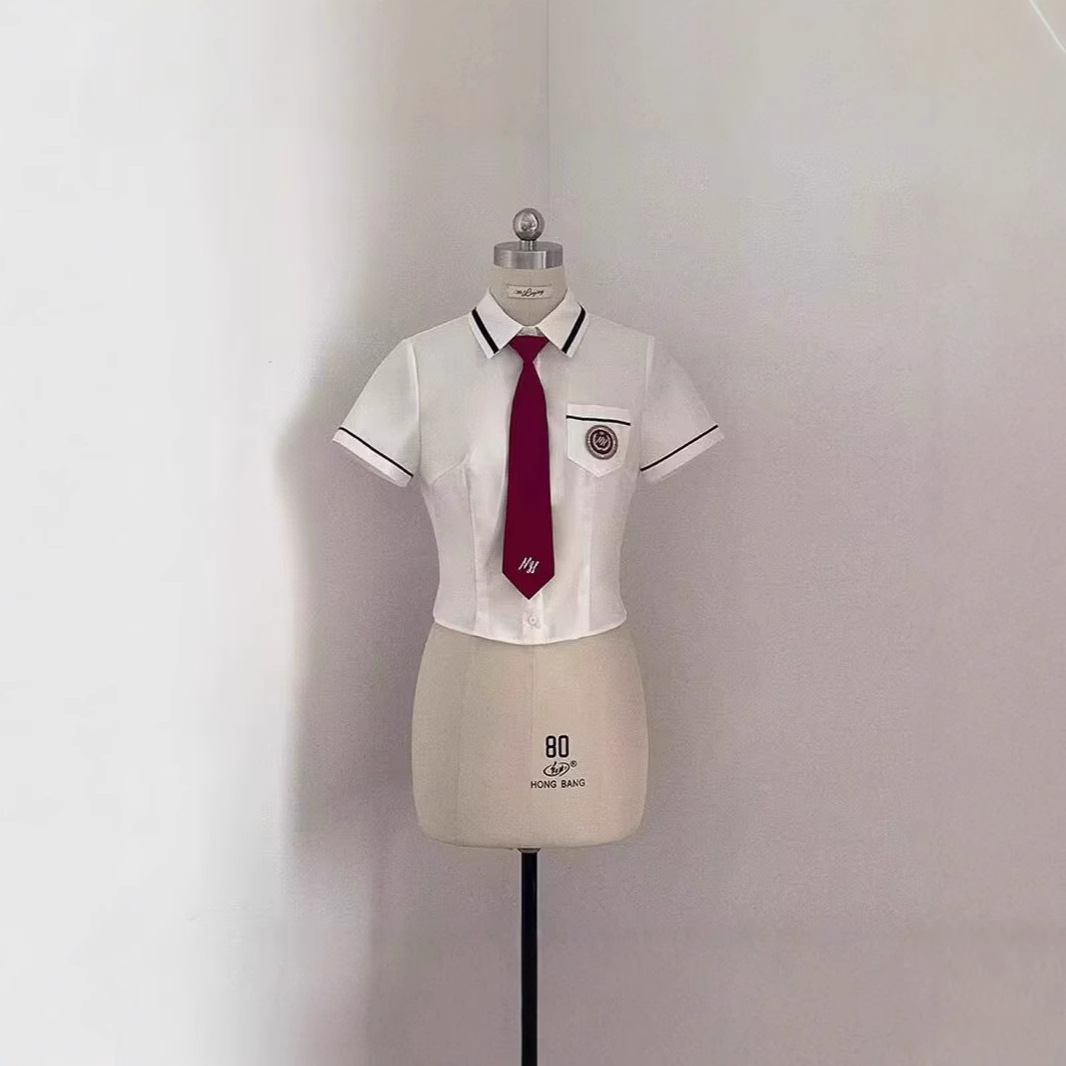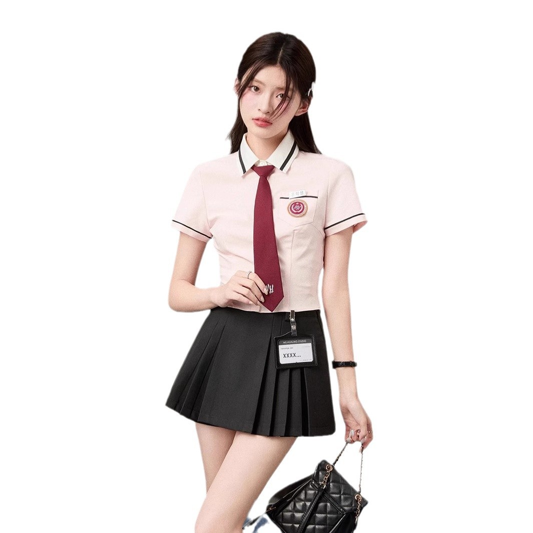 夏季韩系校服jk衬衫女短袖新款修身收腰上衣小个子学院风裙子套装