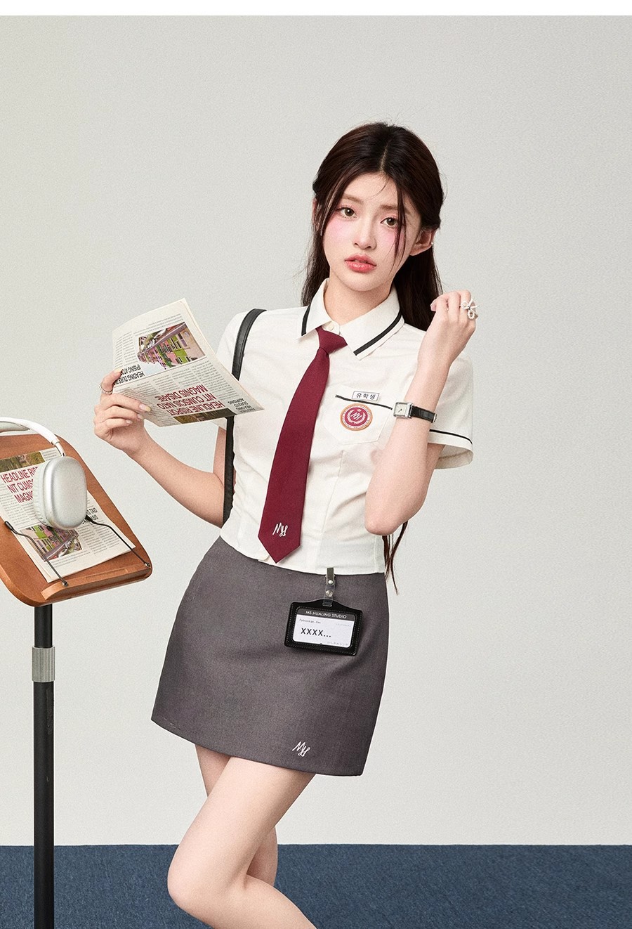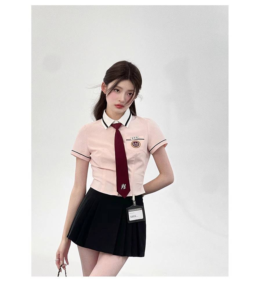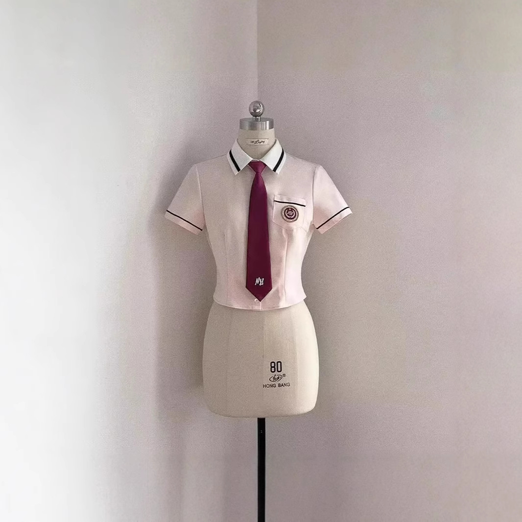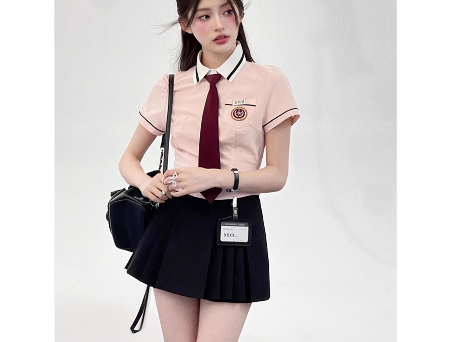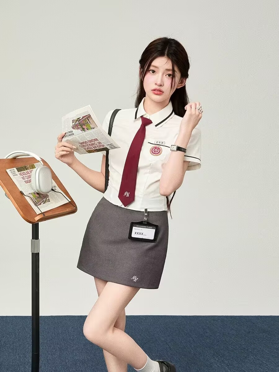 夏季韩系校服jk衬衫女短袖新款修身收腰上衣小个子学院风裙子套装