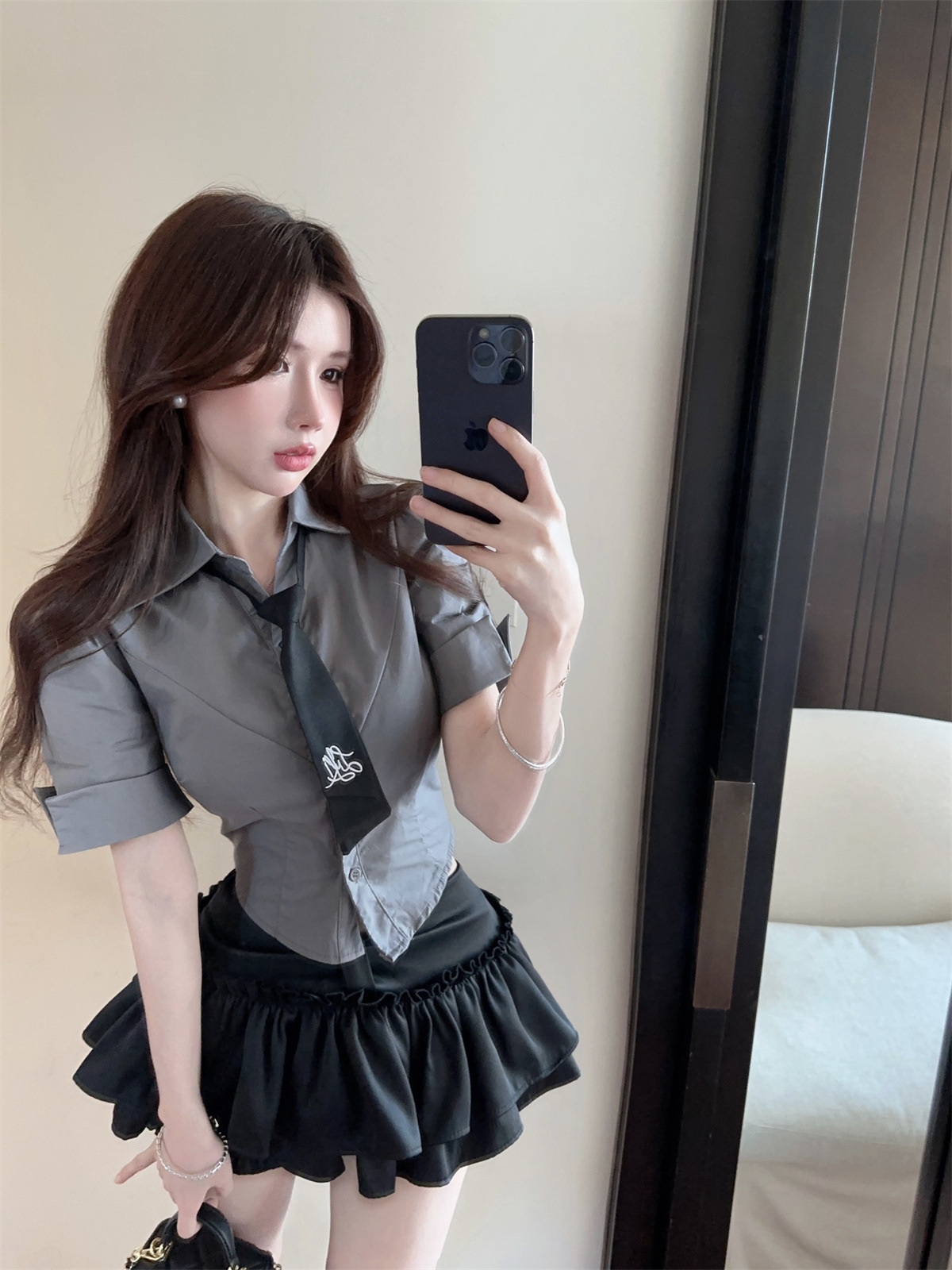 衬衣+黑色裤裙