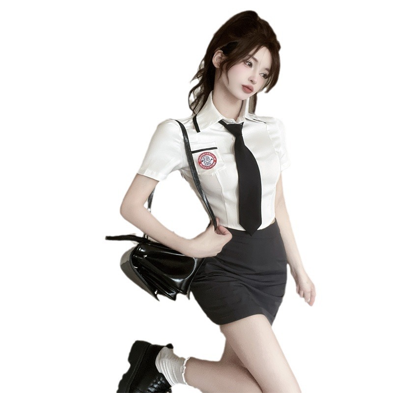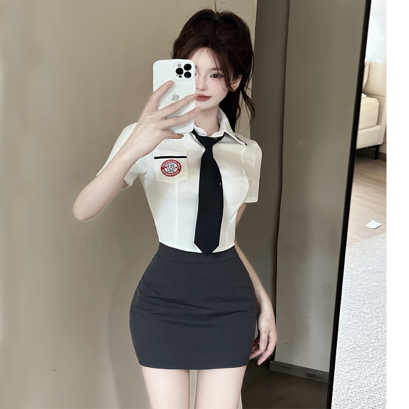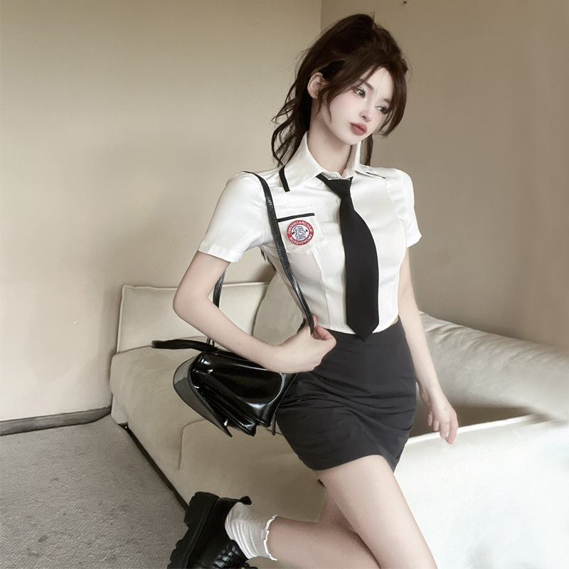 韩系辣妹学院风套装女夏季短袖Polo领衬衫上衣纯欲半身短裙两件套