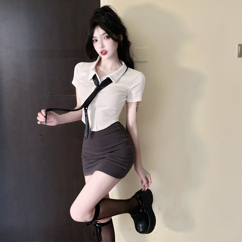 春夏季新款蝴蝶结钉珠高腰露脐短款上衣女潮ins设计感小众短袖t恤