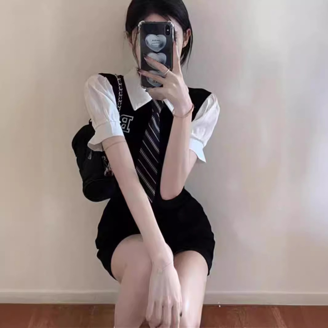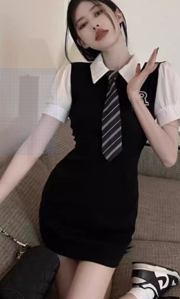 假两件学院风JK制服美容师足浴柔式按摩技师工作服性感包臀连衣裙