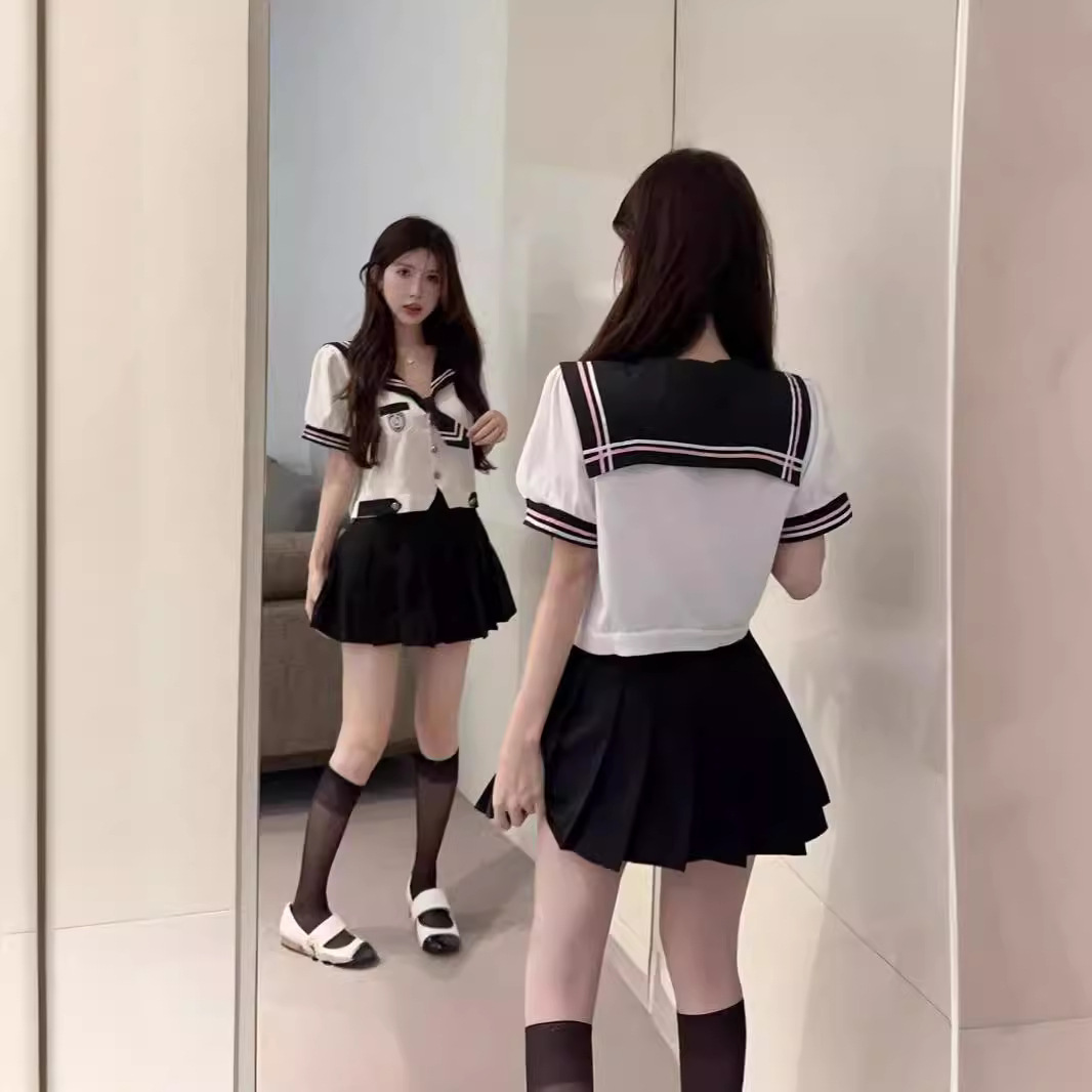 夏季学院风日系气质套装女短袖小个子甜美学生减龄jk海军风两件套