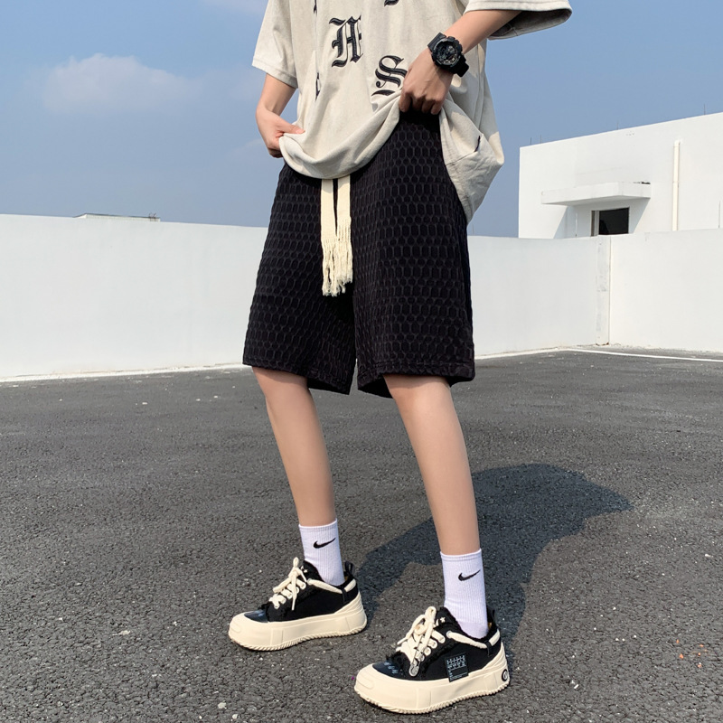 华夫格短裤男士夏季潮流新款宽松休闲卫裤男生运动五分裤子男