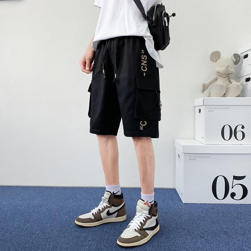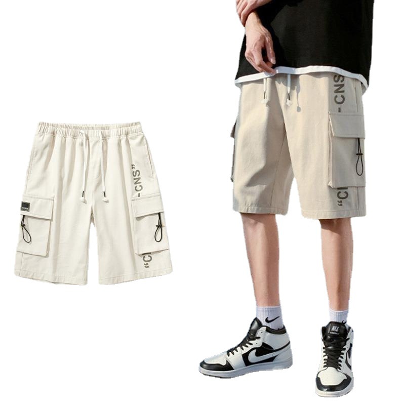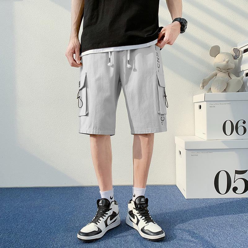 工装短裤男款冰丝美式宽松休闲男士运动五分裤子男装沙滩裤