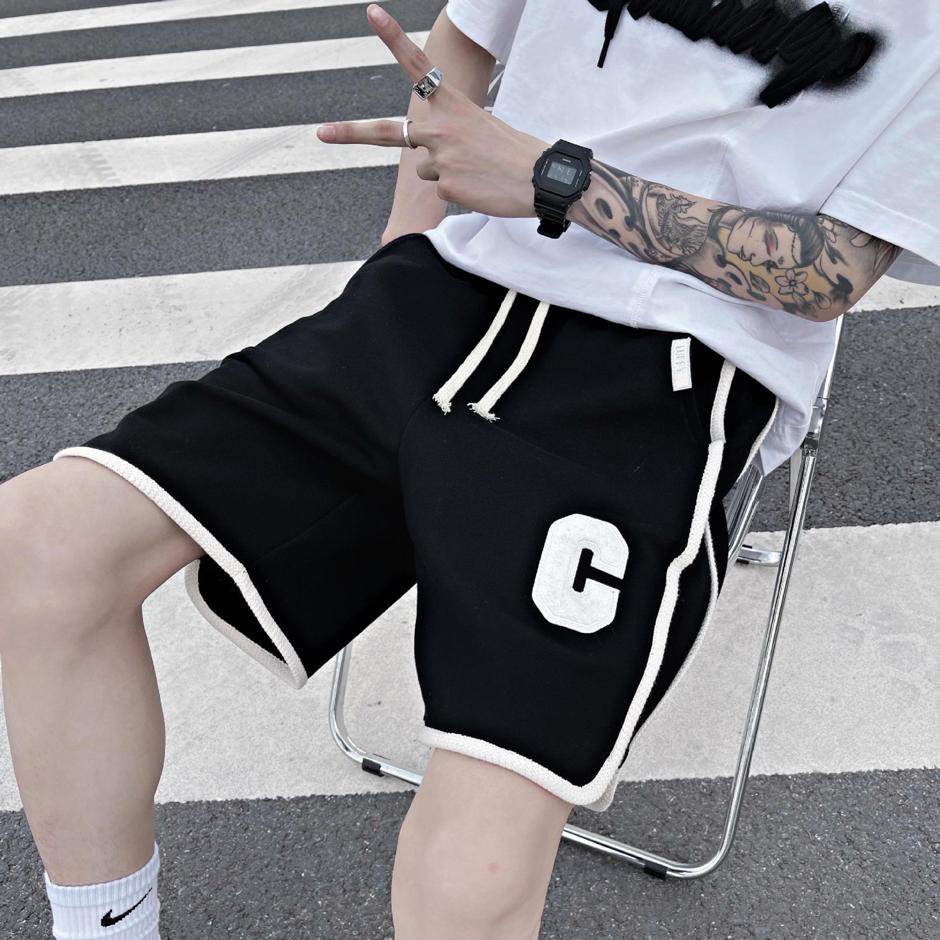 织带撞色休闲短裤男夏季美式篮球运动裤直筒阔腿五分裤外穿大裤衩