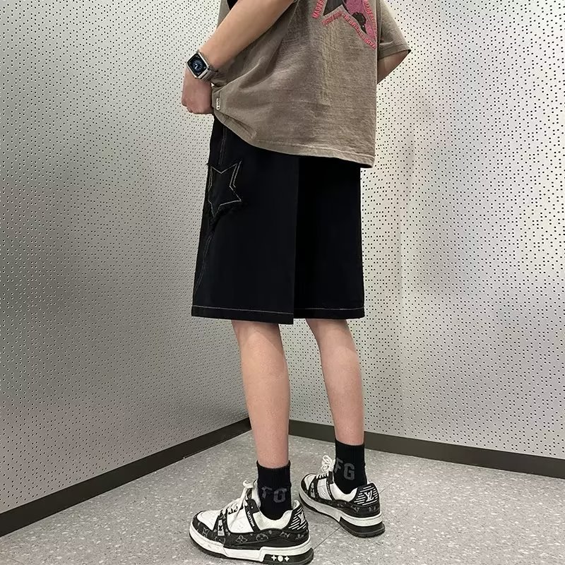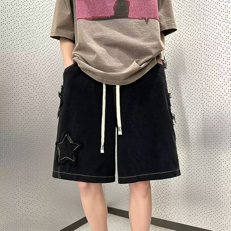 美式hiphop星星短裤男夏季潮牌痞帅炸街休闲重磅五分中裤oversize