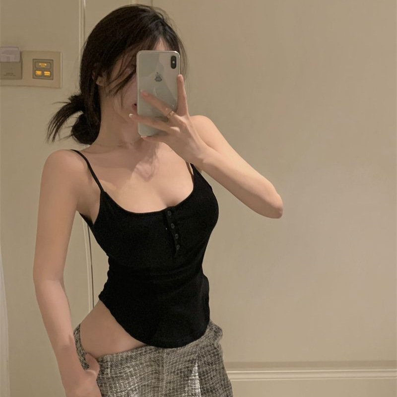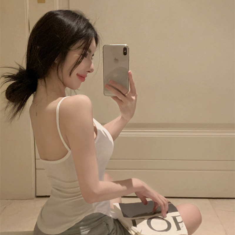 灰色辣妹吊带女装夏季性感内搭不规则露背短款小背心纯欲上衣外穿