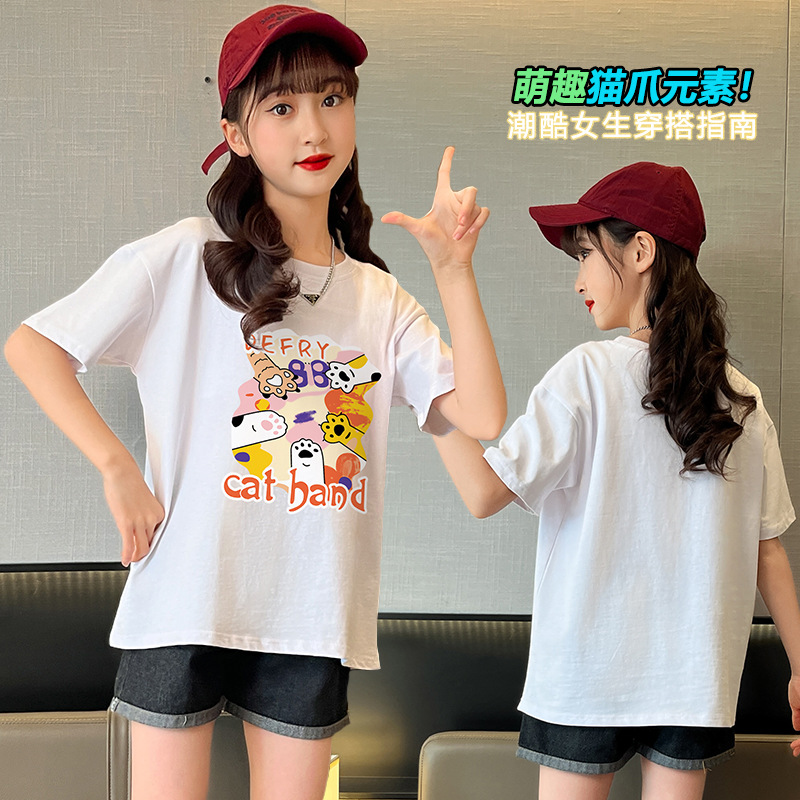 女童短袖T恤夏季新款韩版棉质透气中大女孩夏装儿童装半袖上衣潮