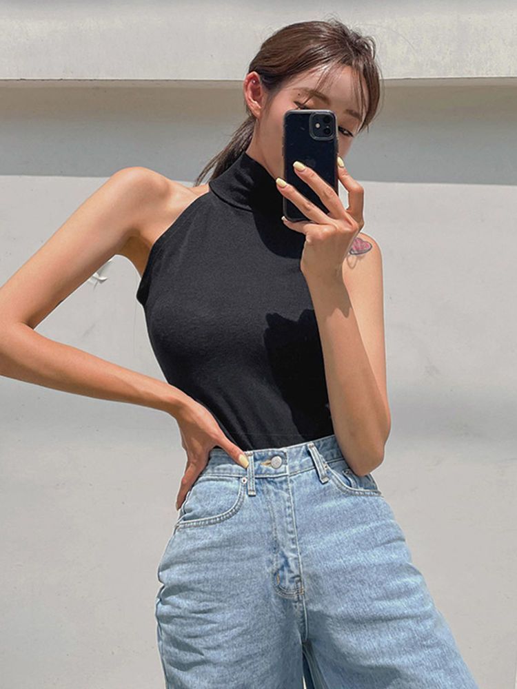 黑色背心上衣女新款弹力修身露肩T恤内搭打底衫T恤