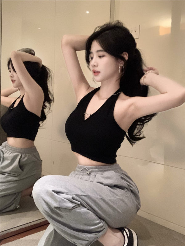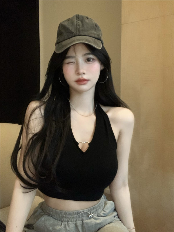 纯欲风辣妹镂空挂脖吊带背心女夏季内搭外穿修身显瘦露脐短款上衣