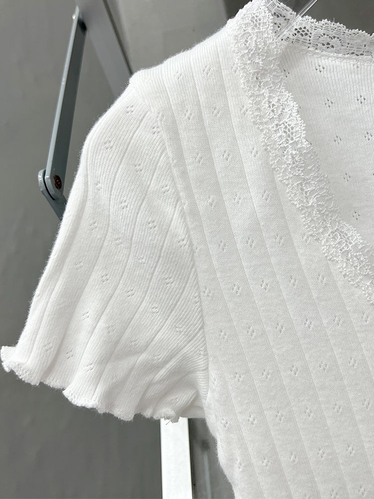 白色纯欲甜美蕾丝修身显瘦打底女夏季正肩短款内搭短袖T恤上衣ins