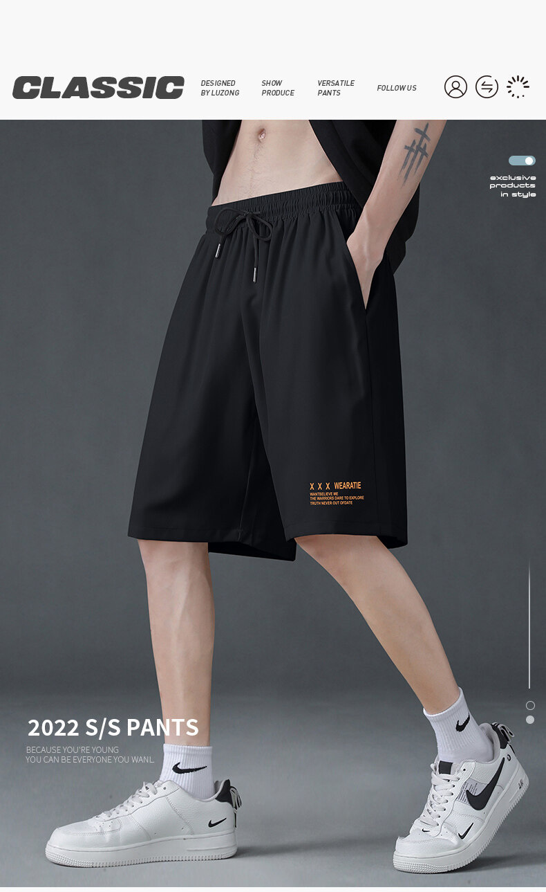 男生短裤夏季冰丝薄款外穿速干宽松潮男裤子男士五分休闲运动裤男