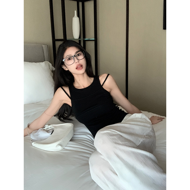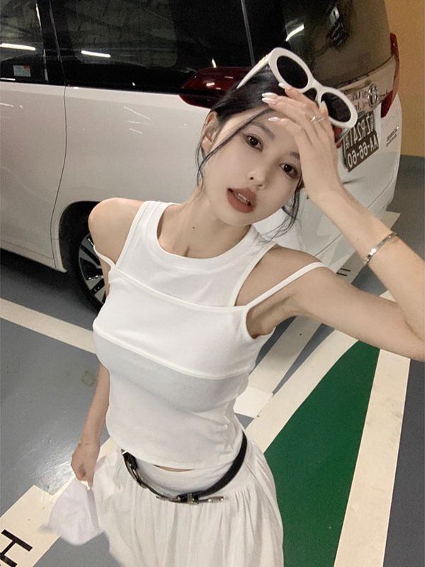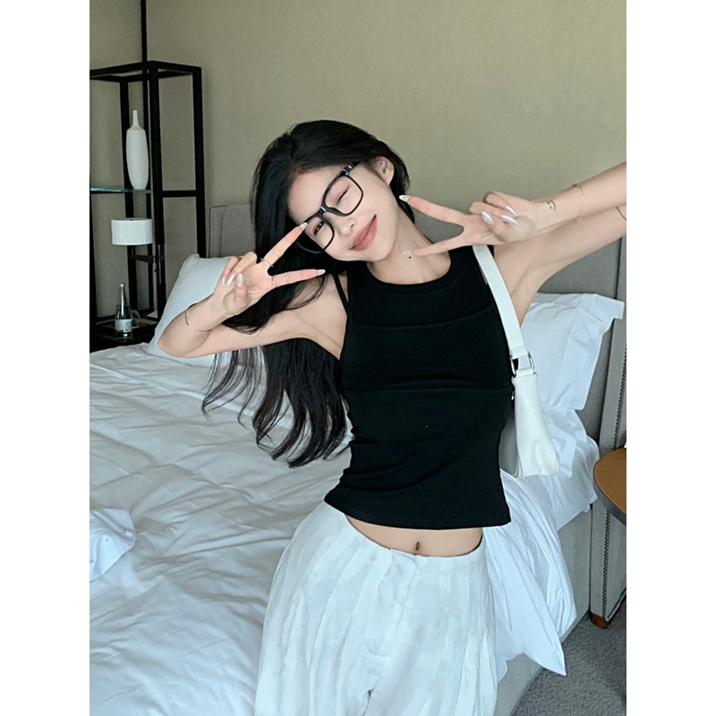 假两件外穿黑色小背心吊带女夏季辣妹短款无袖修身白色打底上衣