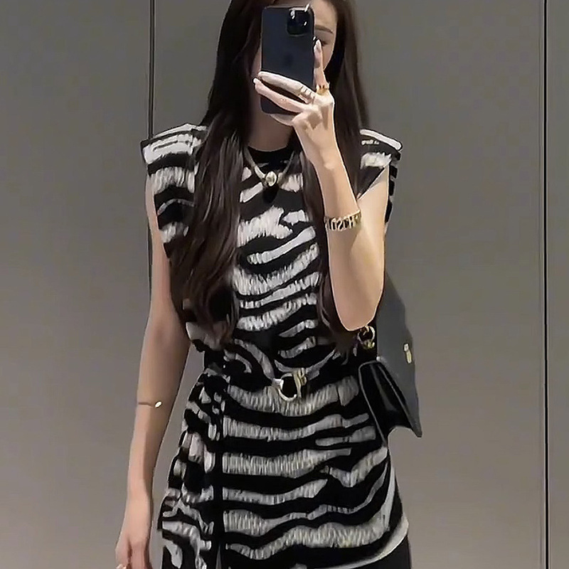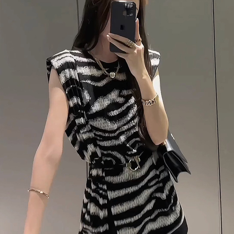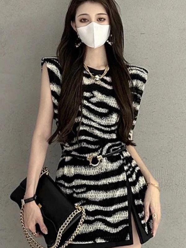 连衣裙女韩版时尚撞色设计感夏季小众新款辣妹风无袖圆领收腰短裙