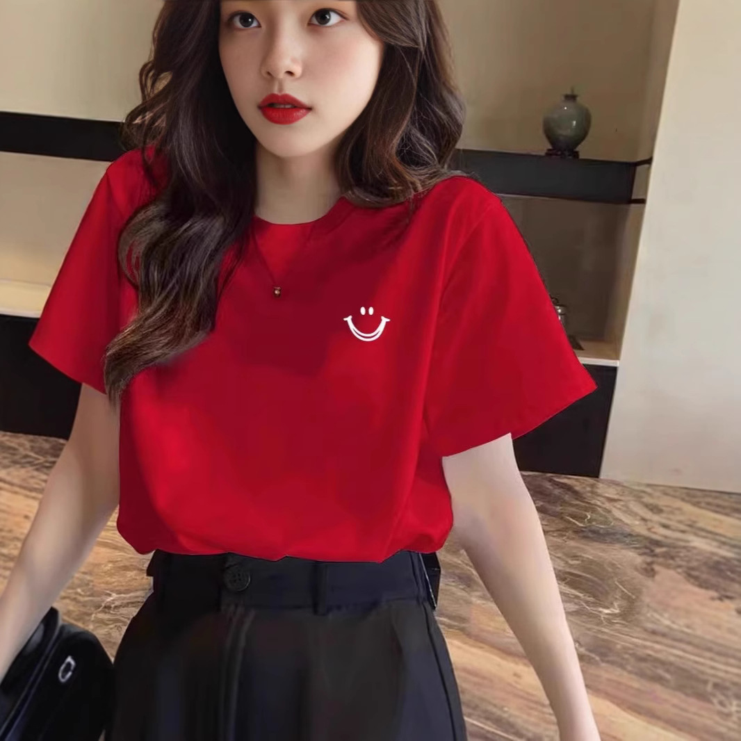 2025新年纯棉t恤女春夏季大码宽宽松红色短袖蛇年本命年衣服半袖