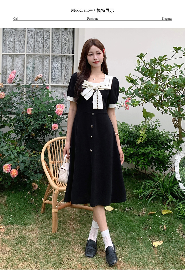实拍现货~大码微胖女生法式蝴蝶结显瘦连衣裙小众设计感胖mm裙子