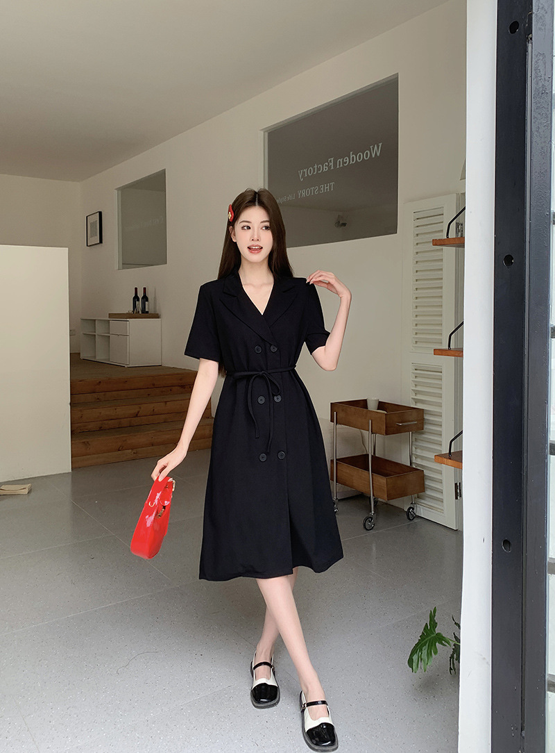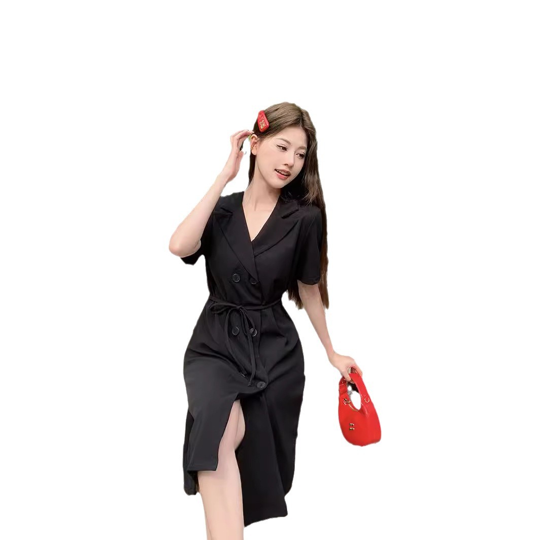 实拍现货~赫本风法式v领黑色连衣裙子女夏季高级感小个子气质长裙