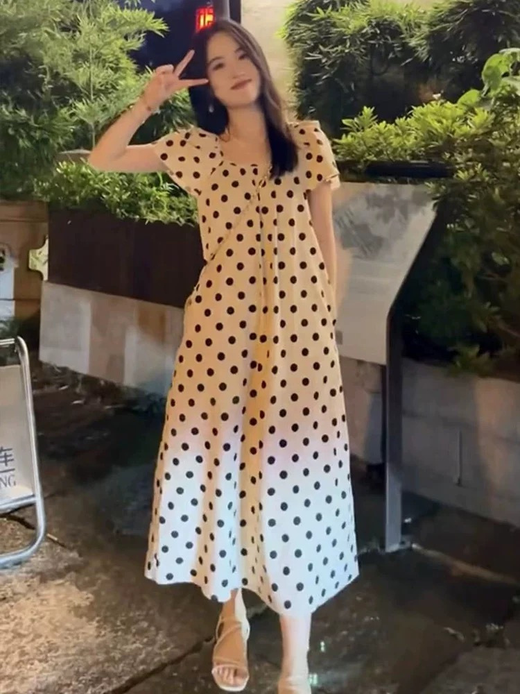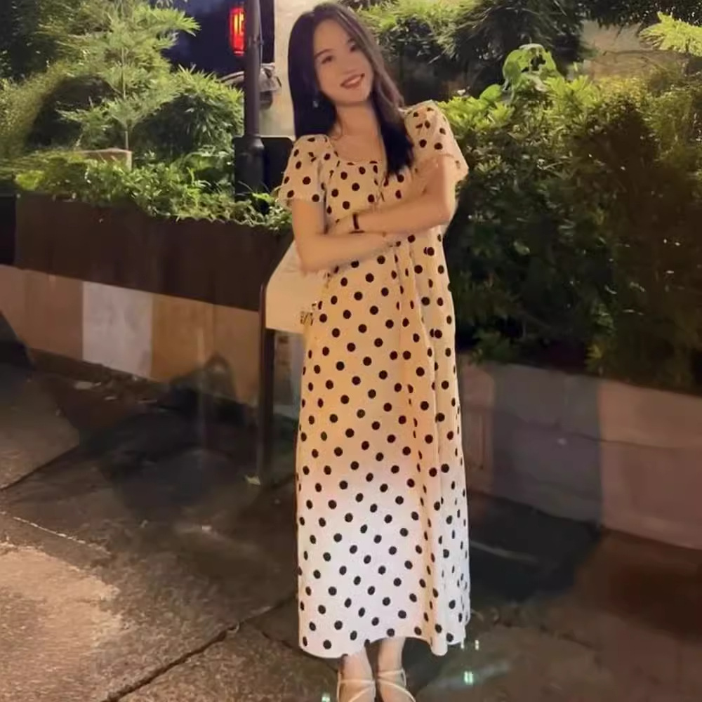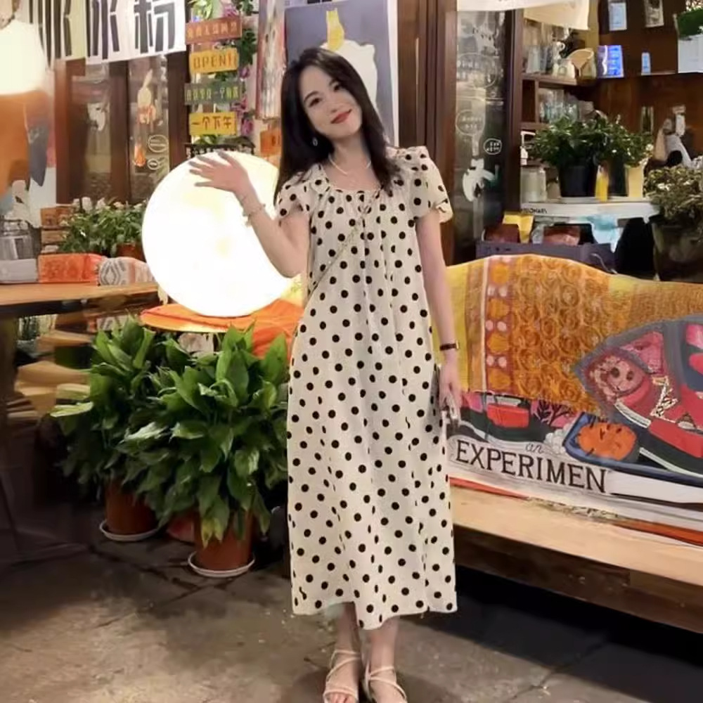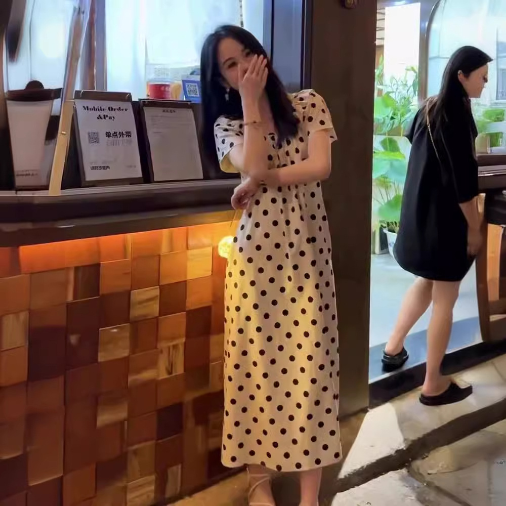 法式设计感减龄波点休闲百搭连衣裙女夏季甜美别致显瘦长裙子
