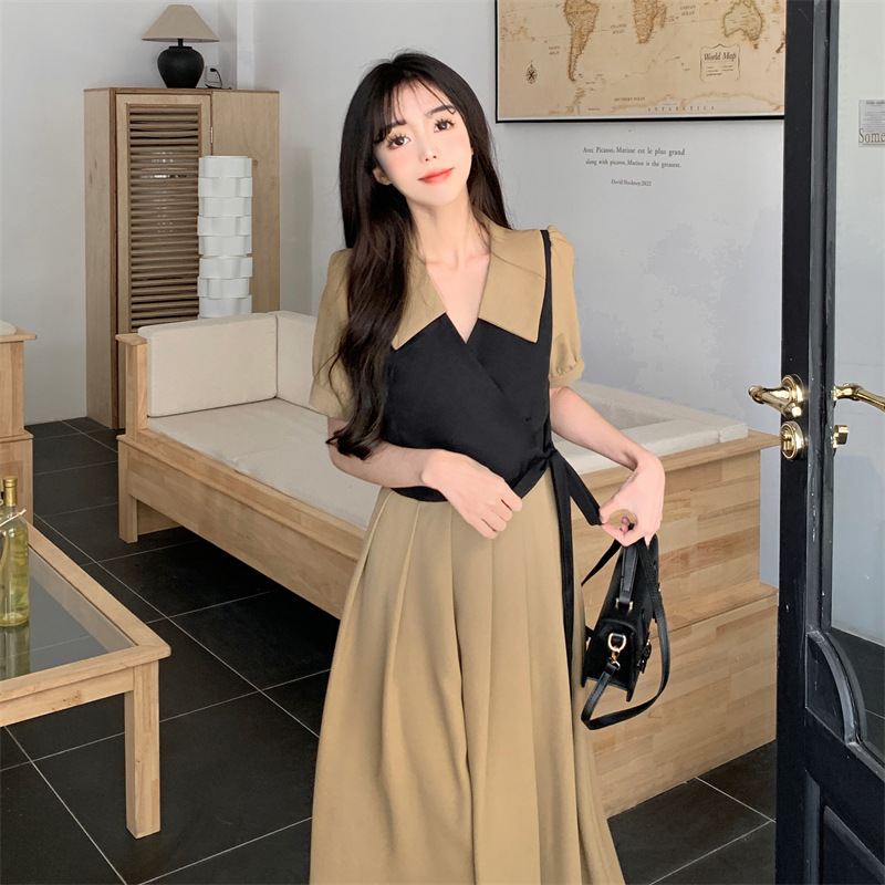 方领短袖衬衫女装春夏新款复古法式感收腰显瘦泡泡袖上衣