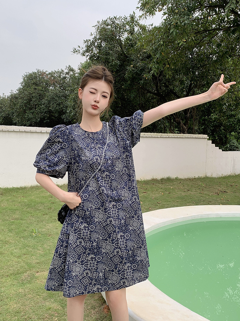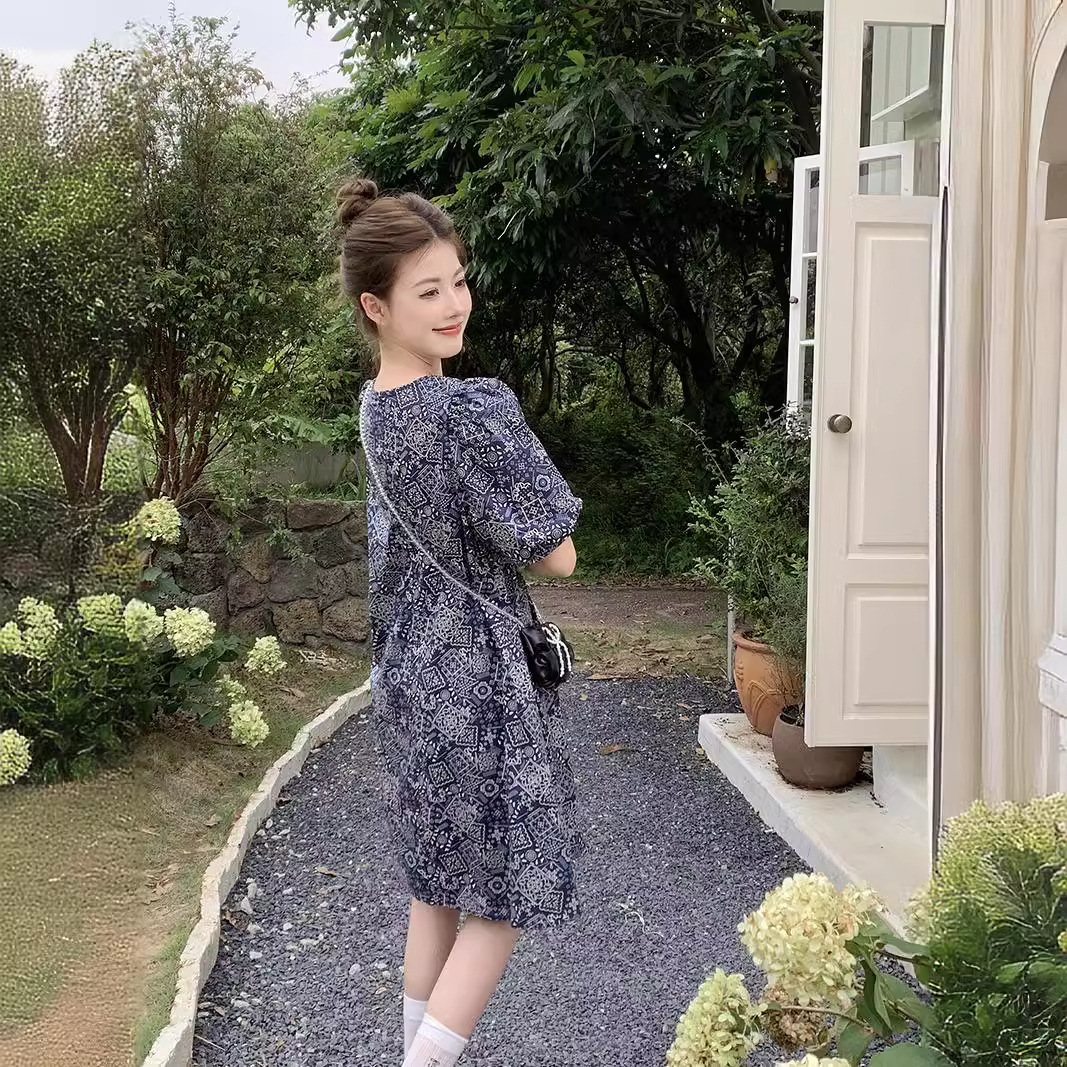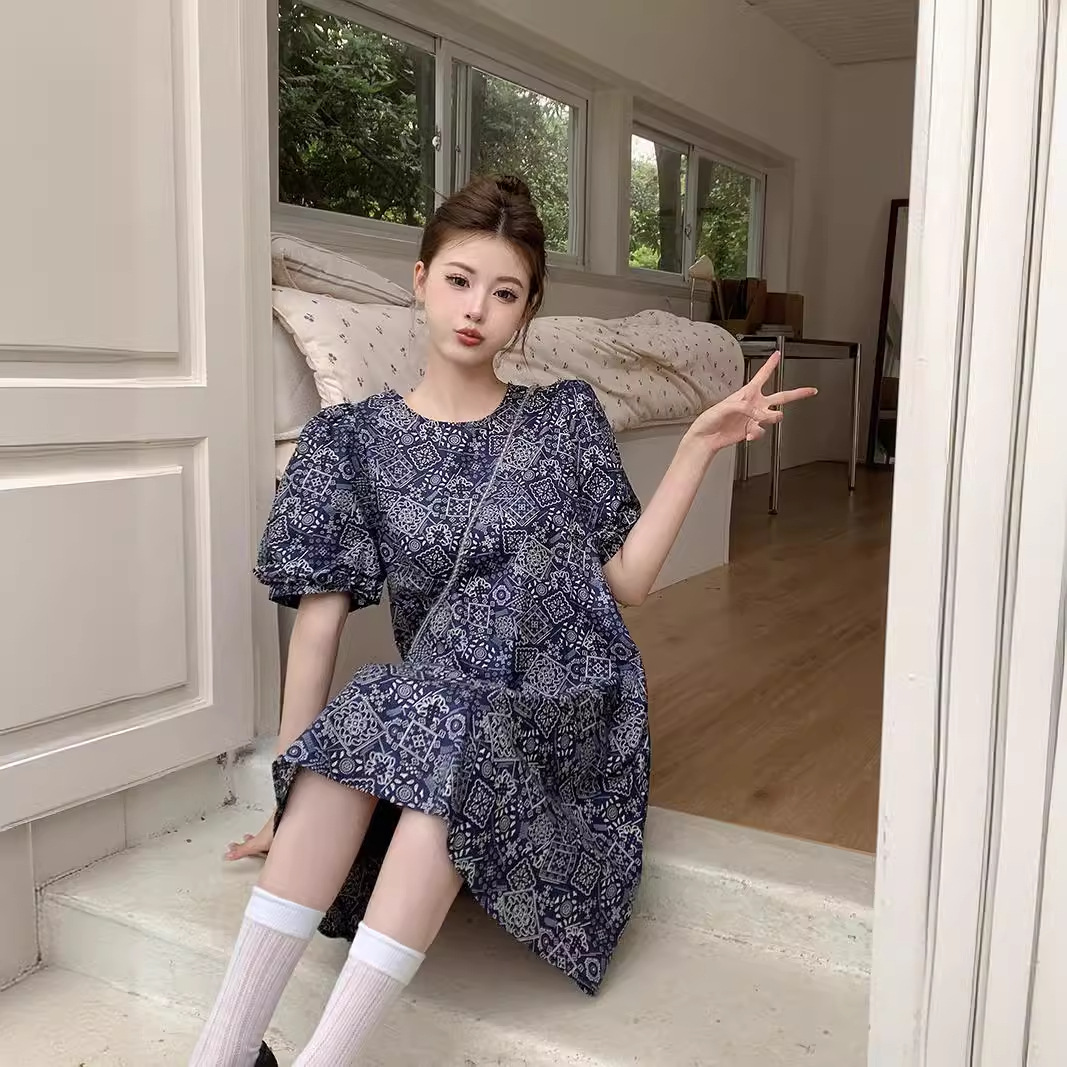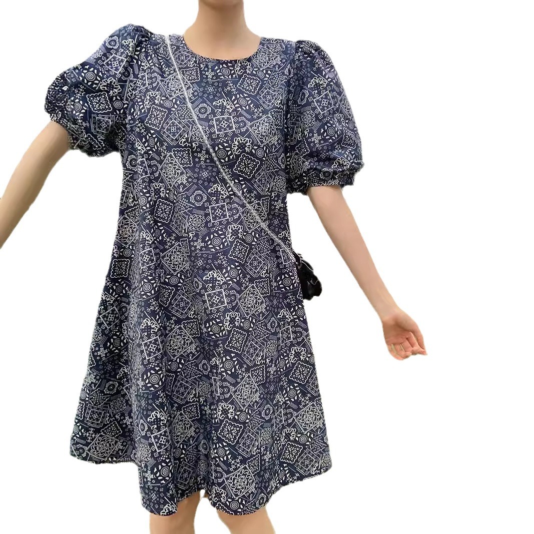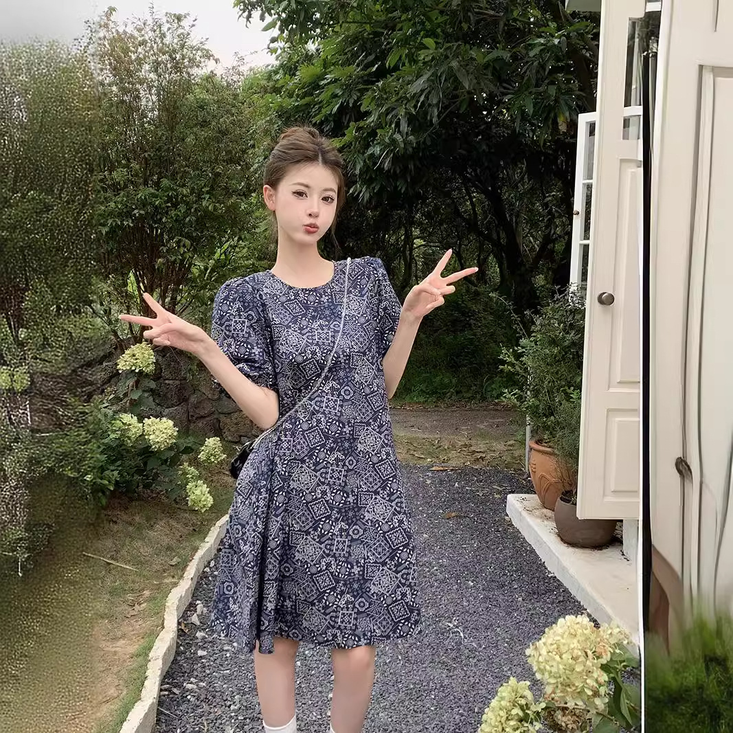 实拍现货~洋气减龄复古碎花连衣裙夏季新款大码胖mm显瘦小众a字裙