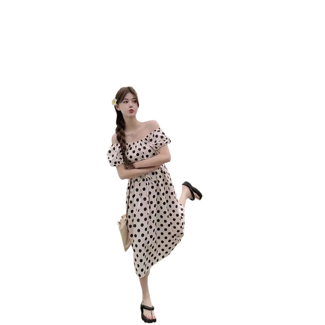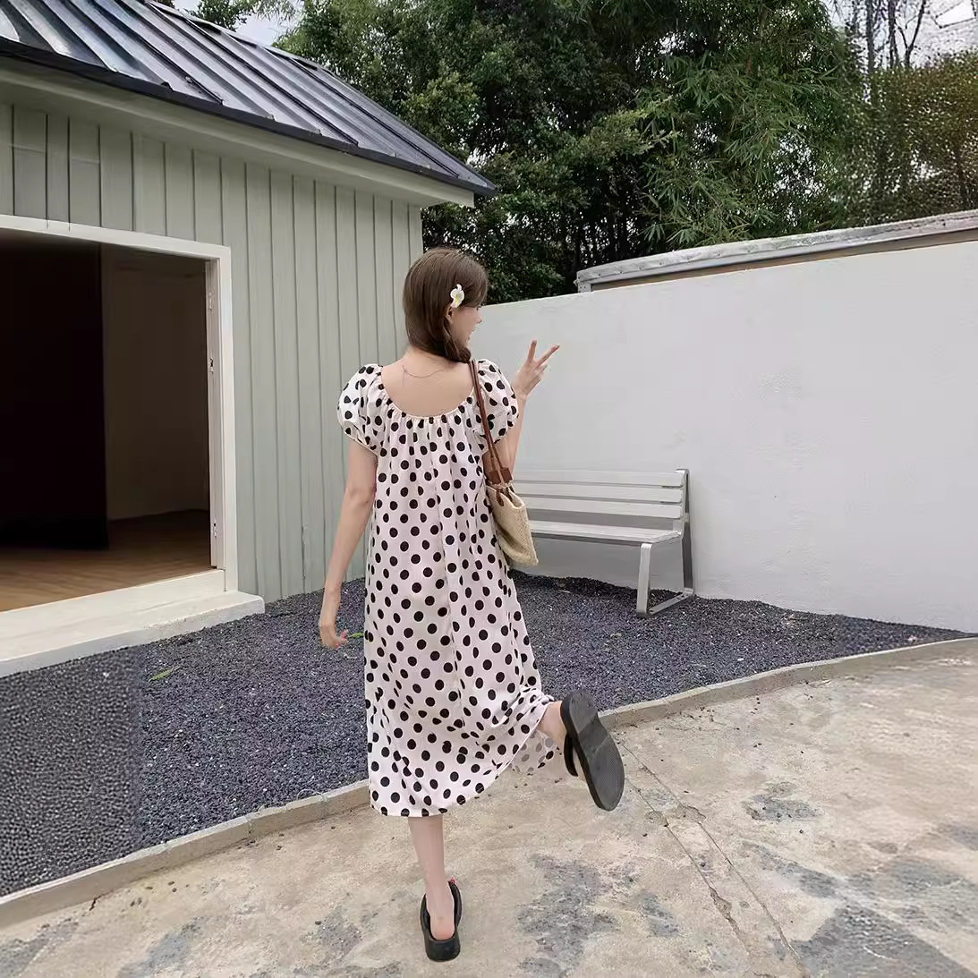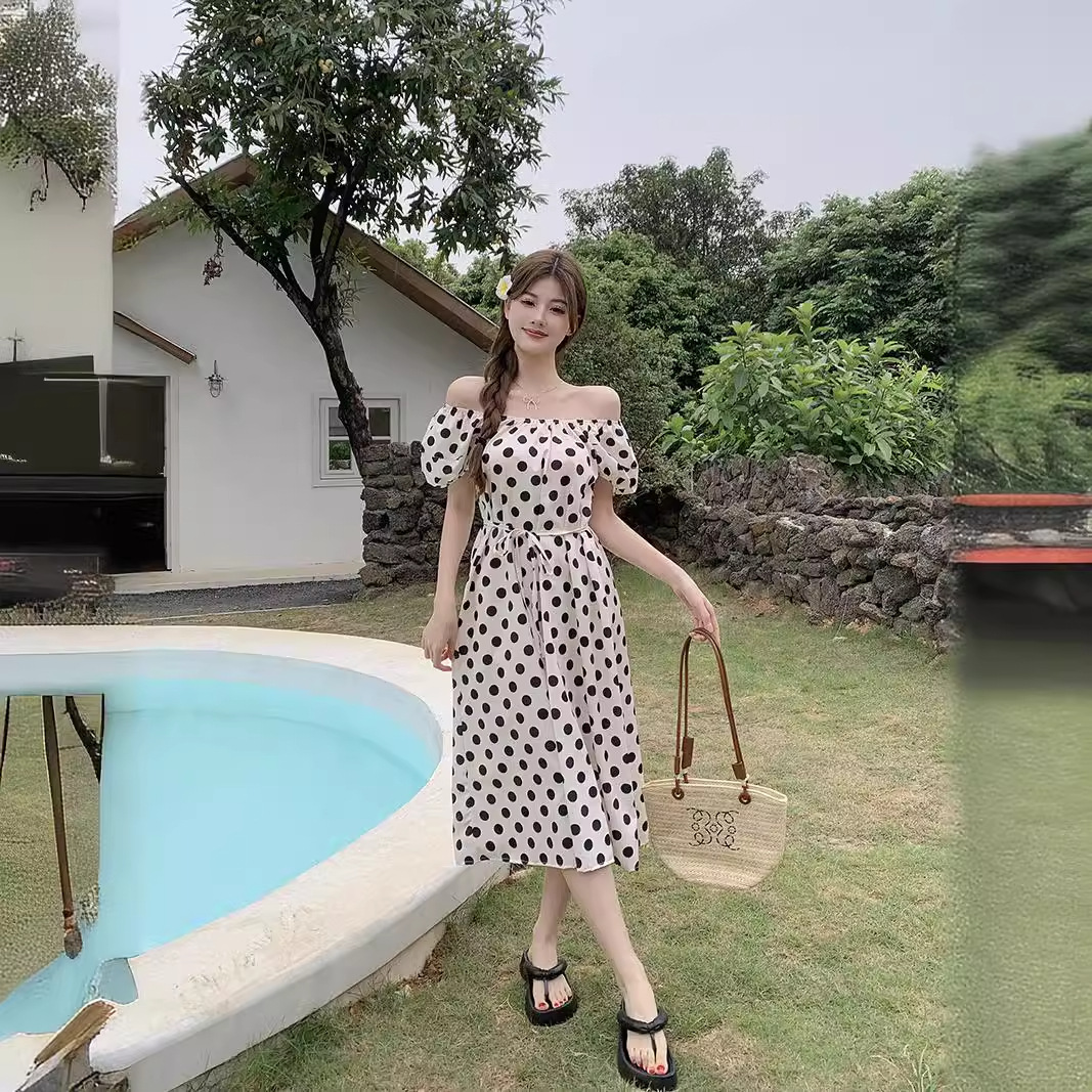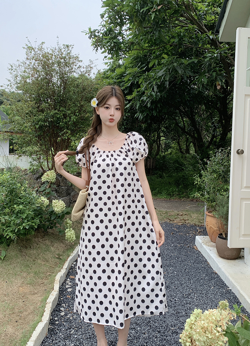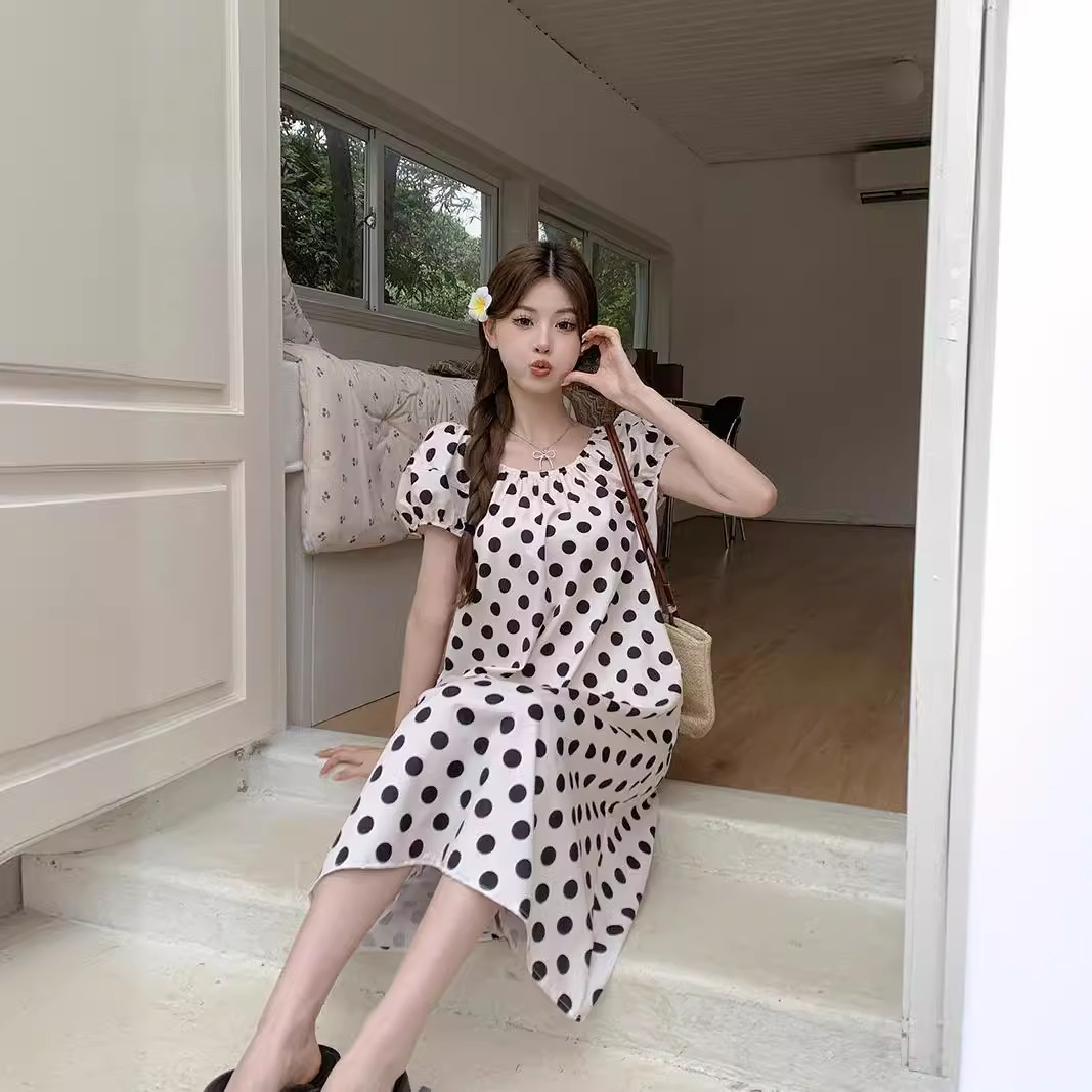 实拍现货~法式设计感减龄波点休闲连衣裙夏季甜美别致显瘦长裙子