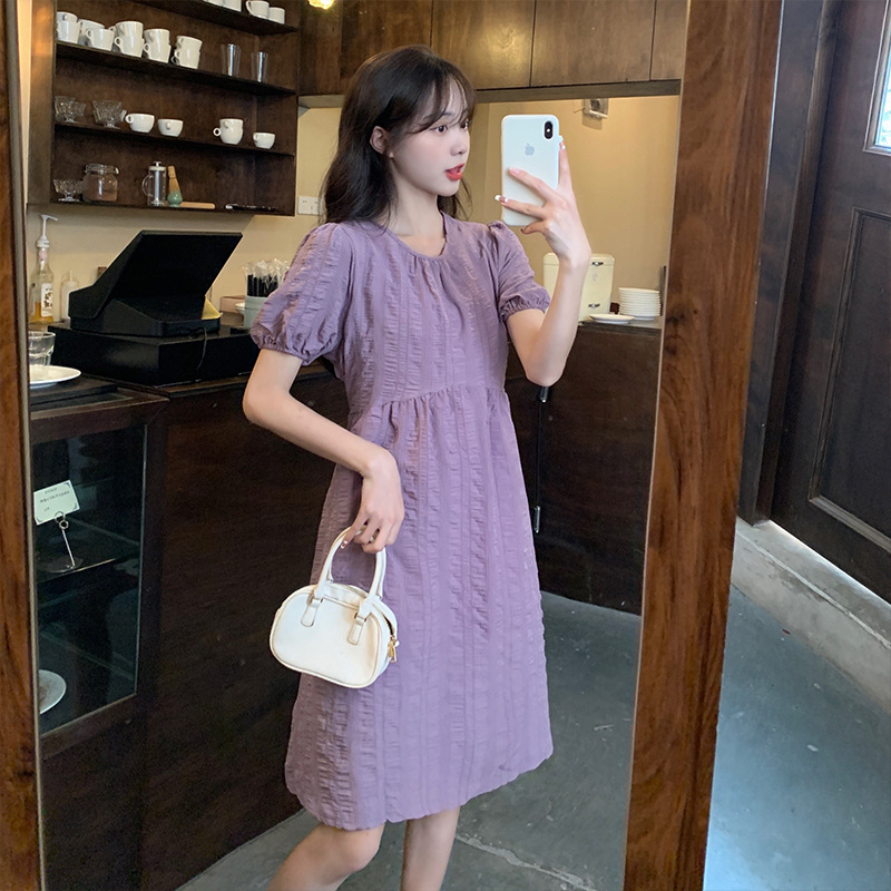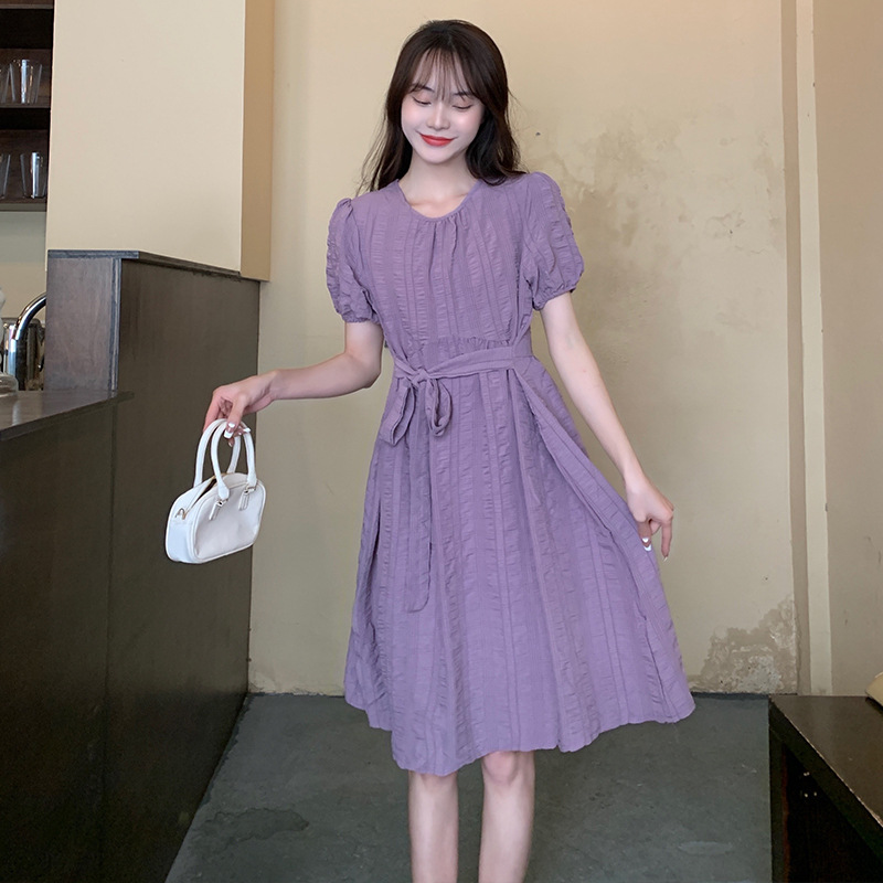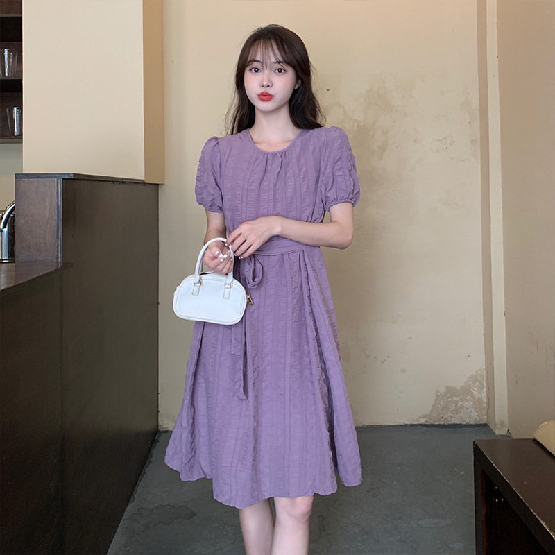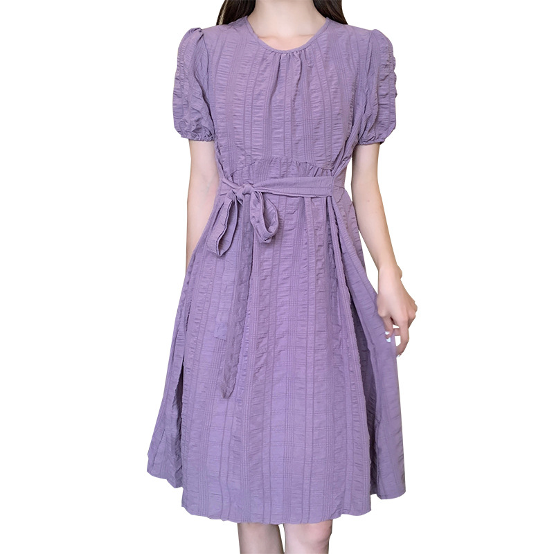 实拍现货~法式温柔风约会裙子女超仙可盐可甜系带显瘦紫色连衣裙
