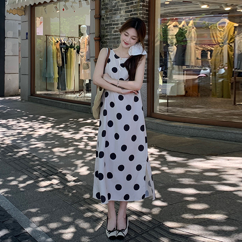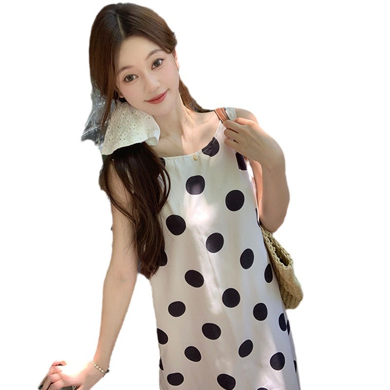 实拍现货~波点连衣裙夏装新款气质复古无袖a字显瘦背心裙女