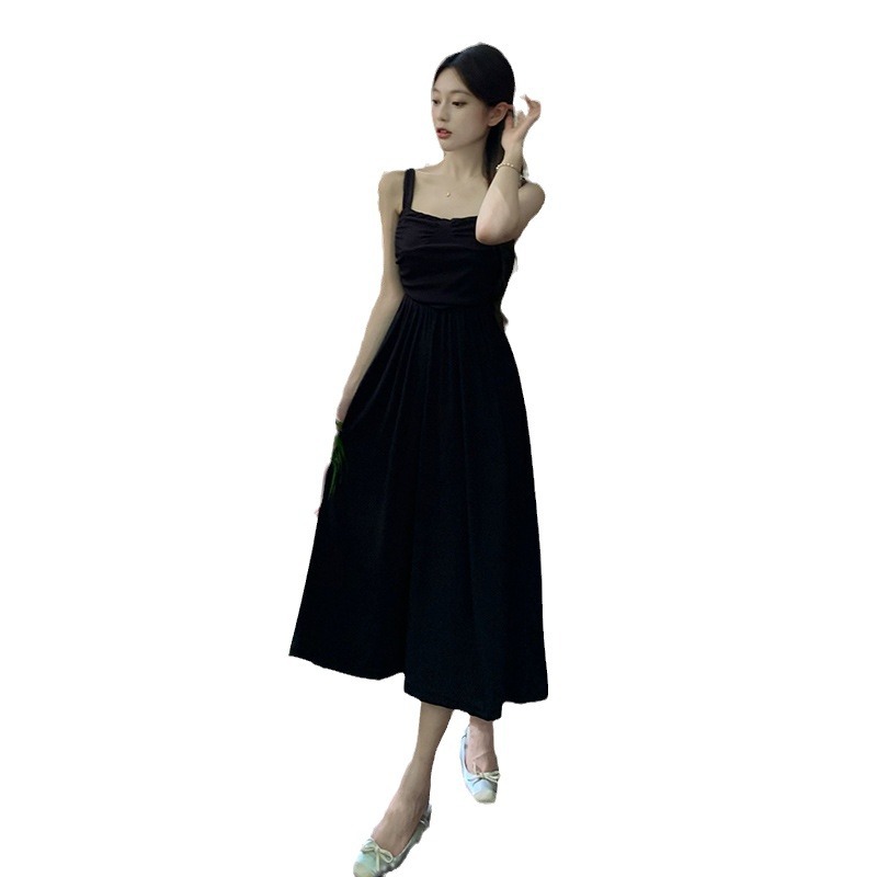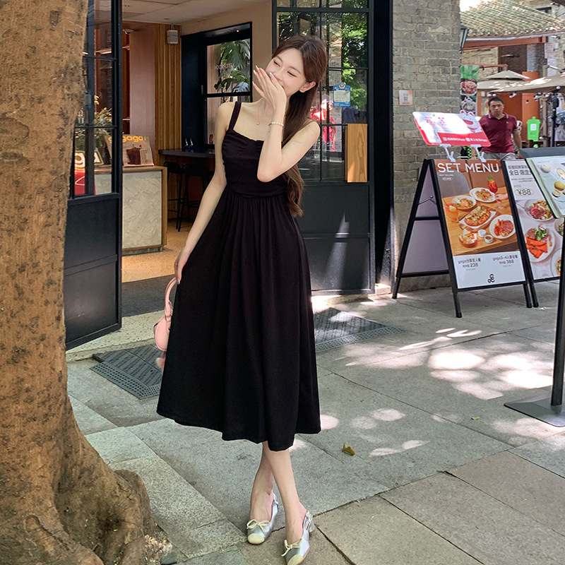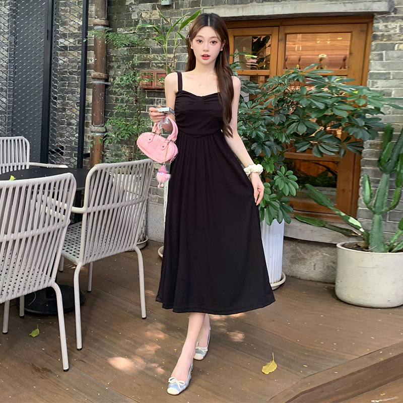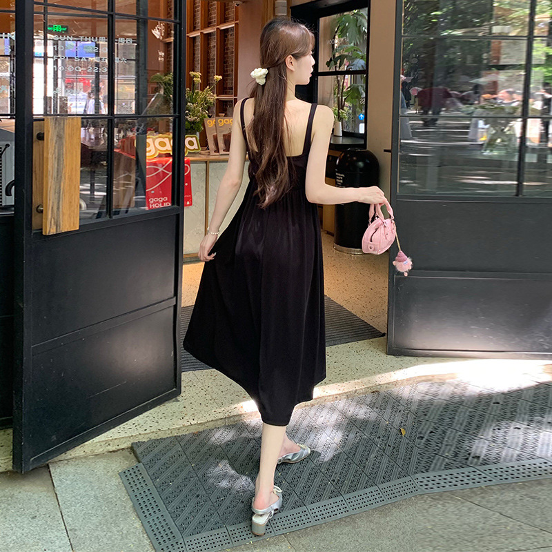 实拍现货~收腰背带连衣裙女新款夏季大码胖mm显瘦遮肉长裙子