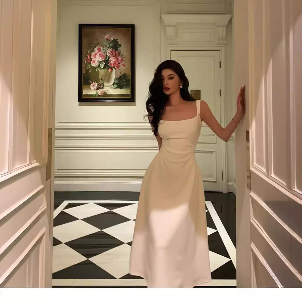 大码胖mm法式气质高级感吊带连衣裙夏季新款a字高腰显瘦白色裙子