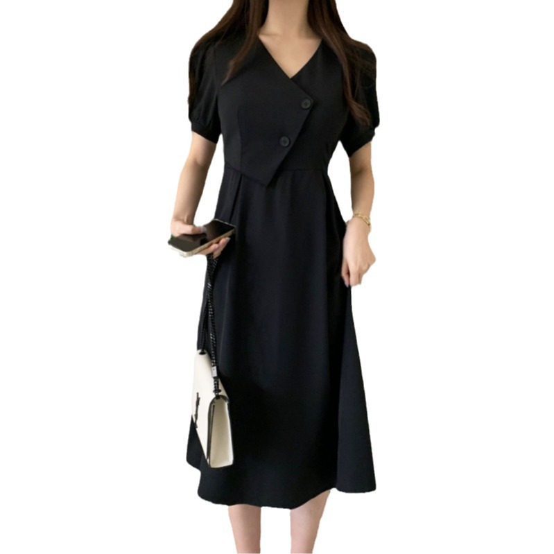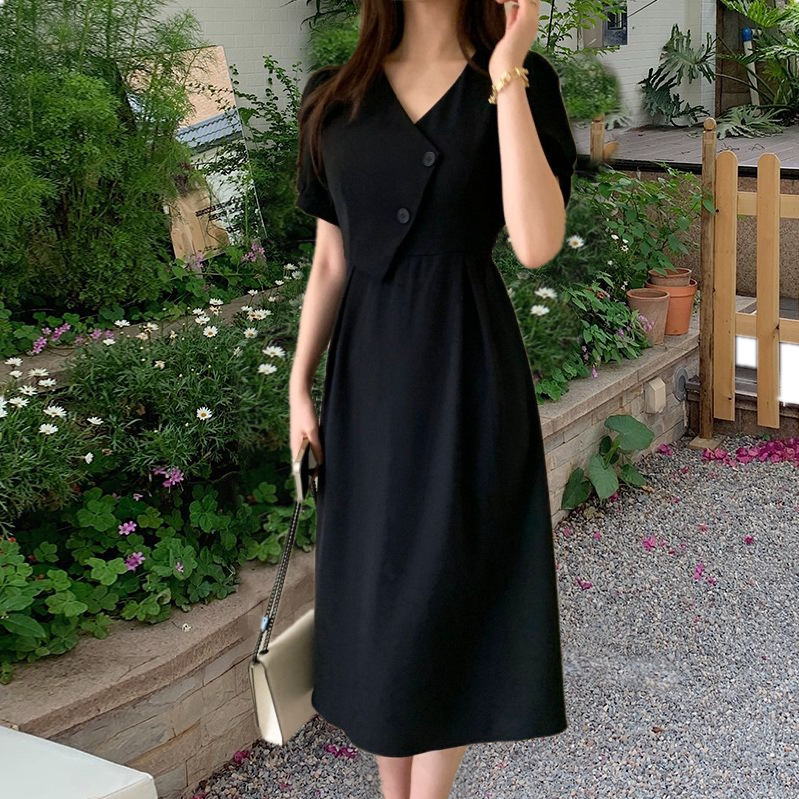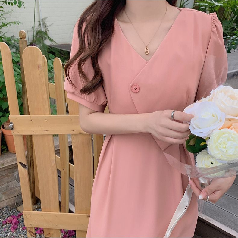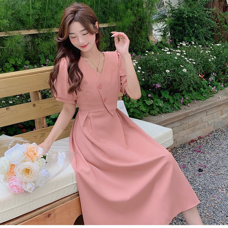 微胖女孩穿搭气质仙女裙夏季大码不规则遮肚子显瘦V领收腰连衣裙