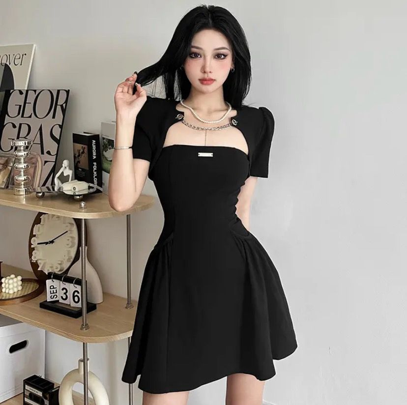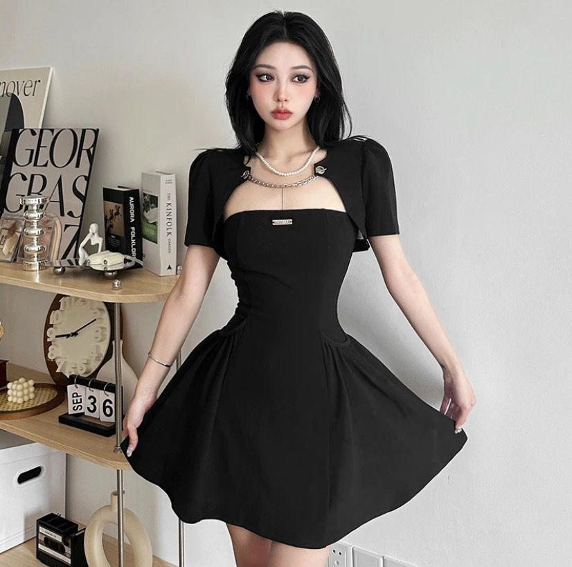 法式御姐风抹胸连衣裙赫本风小黑裙女坎肩上衣纯欲辣妹两件套装夏