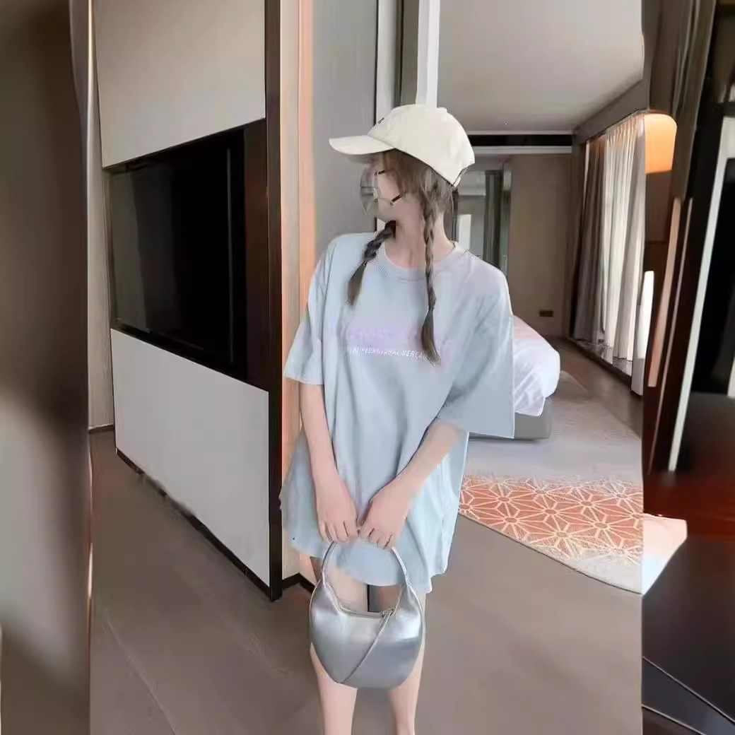 2025新款纯棉短袖T恤女韩版宽松中长款时尚百搭洋气减龄上衣夏季