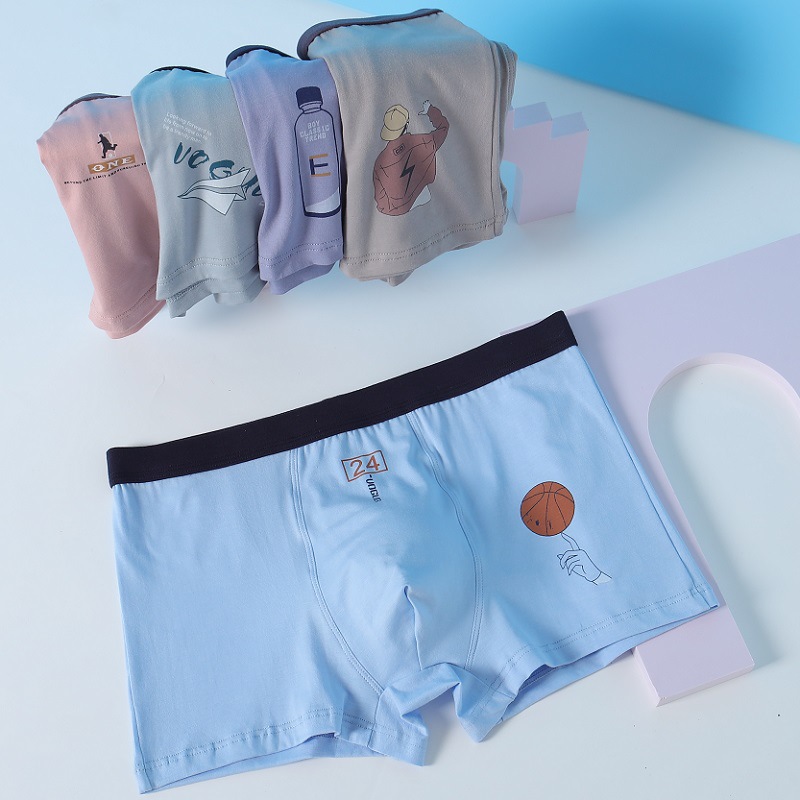 男士内裤薄款透气网孔底裆纯棉四角短裤青少年中腰无痕平角裤钗男