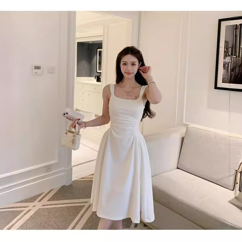 法式高级感初恋白色吊带连衣裙女夏装新款夏款长裙子气质修身