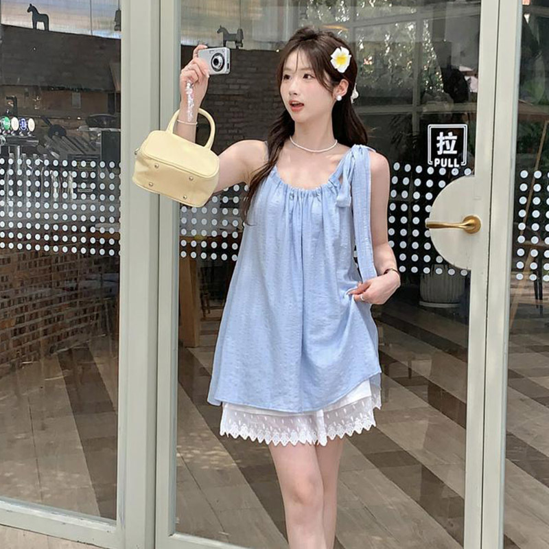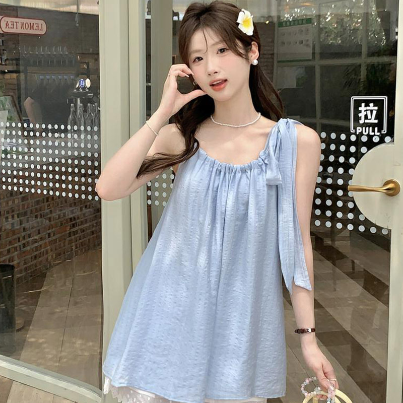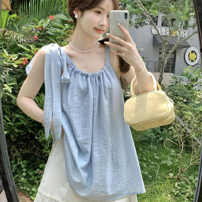 官图实价 温柔休闲时尚无袖衬衫女夏蝴蝶结宽松显瘦上衣吊带潮