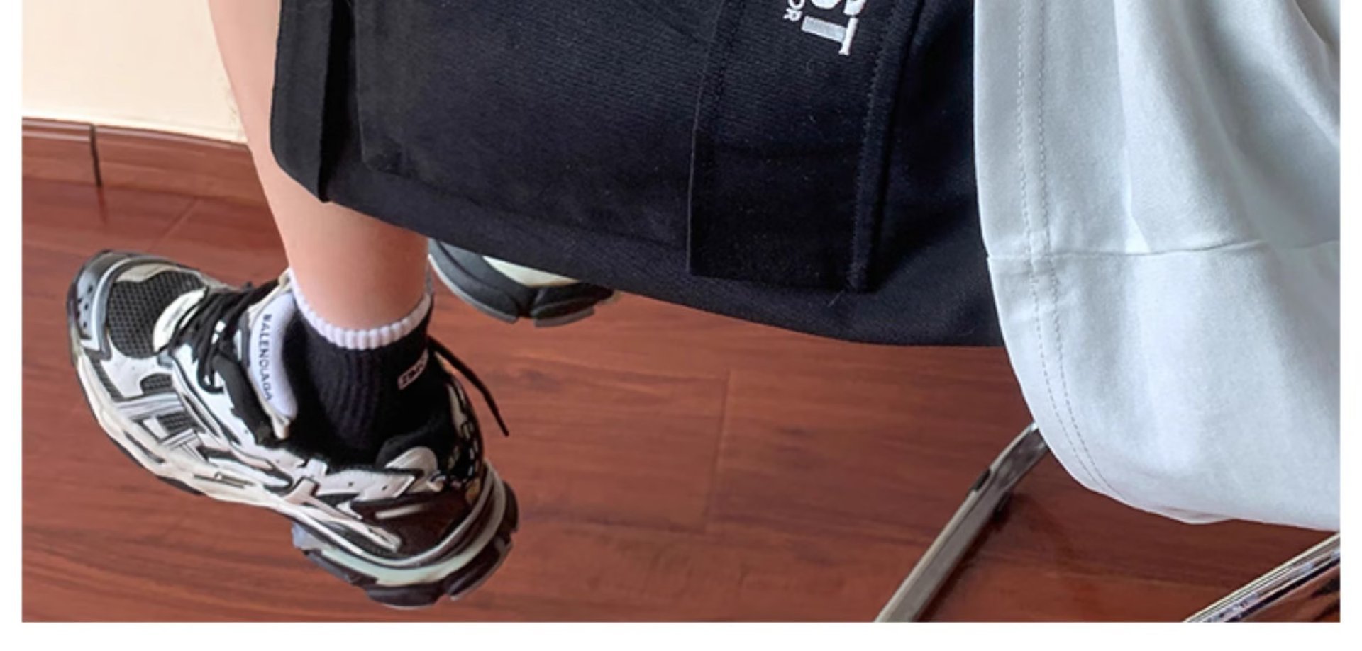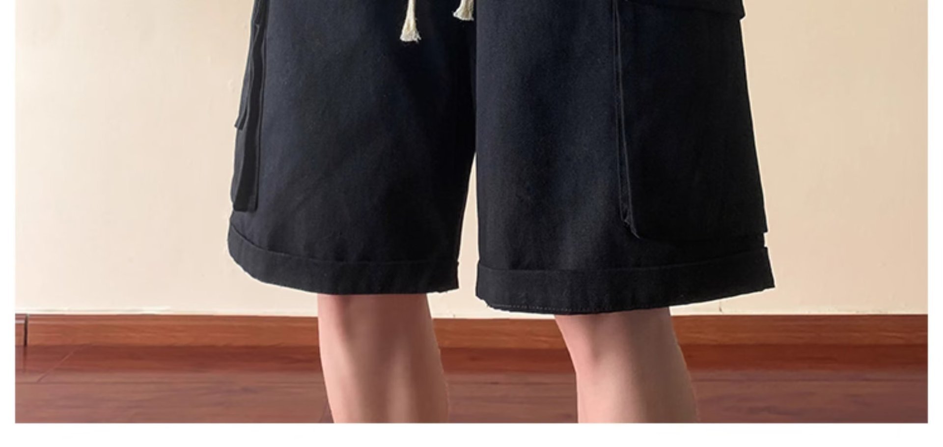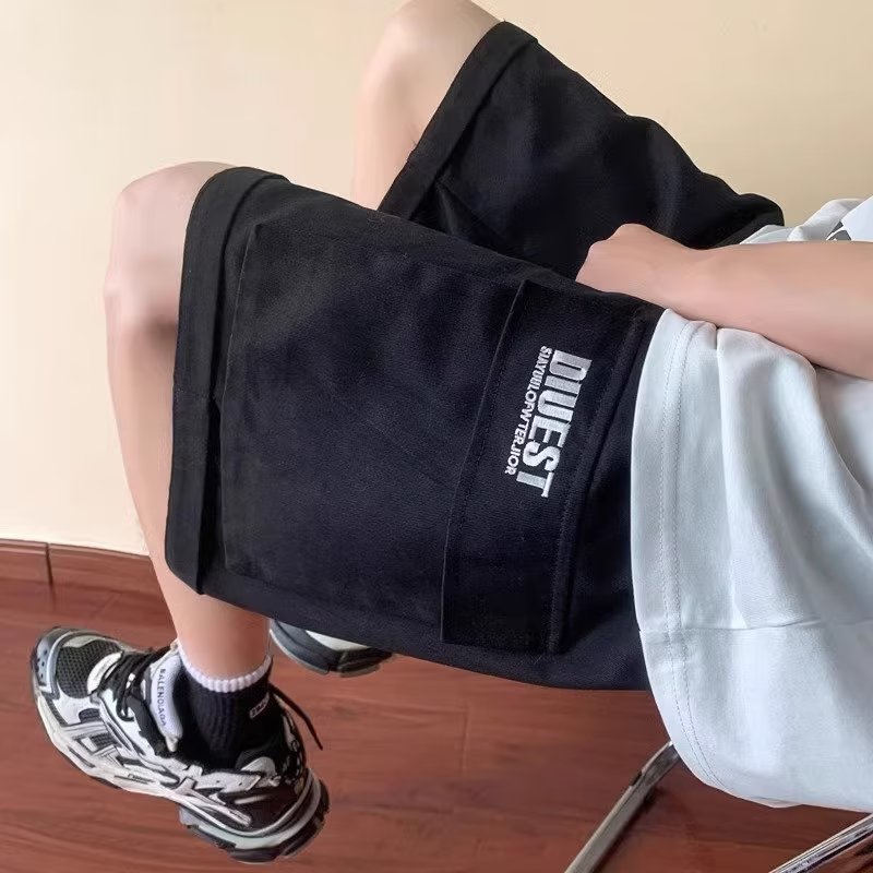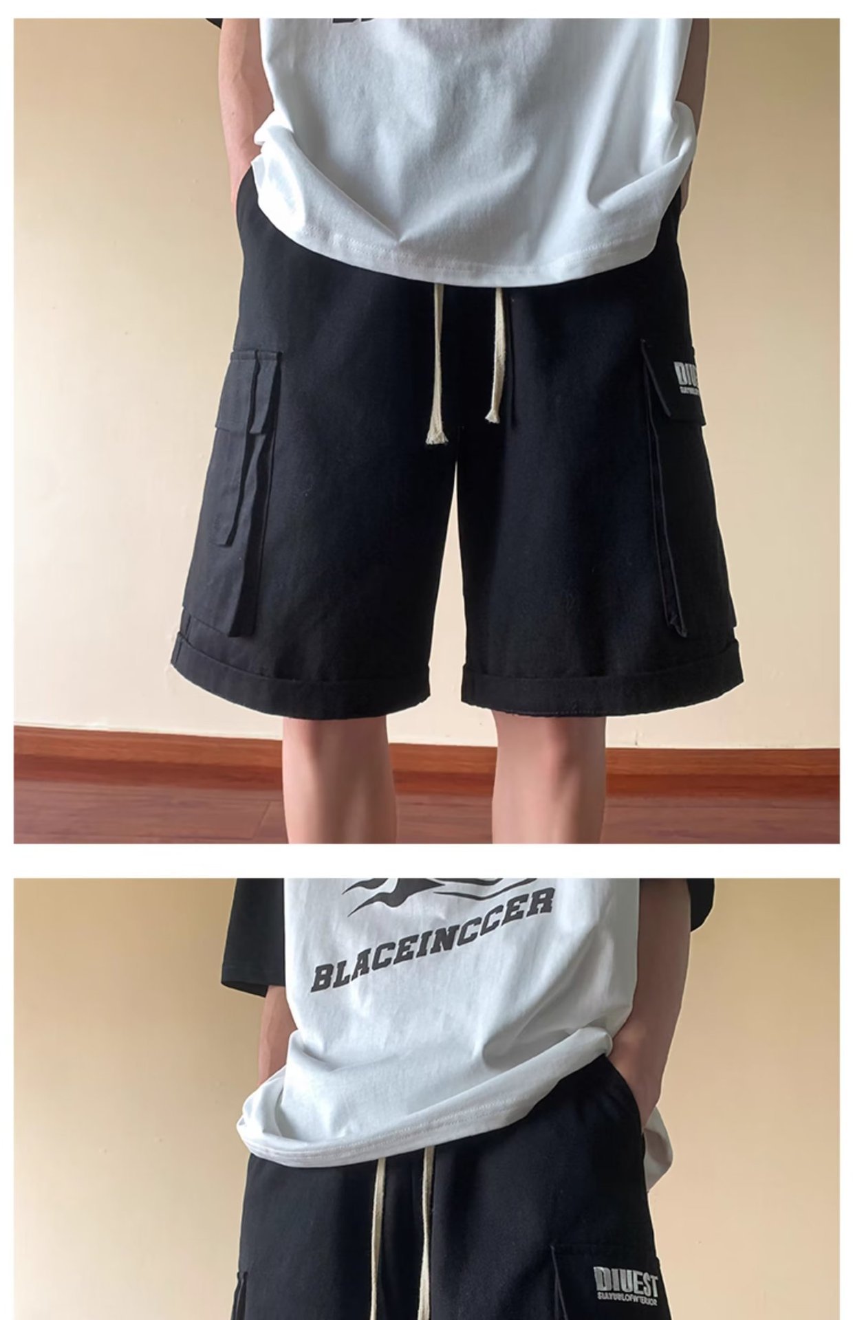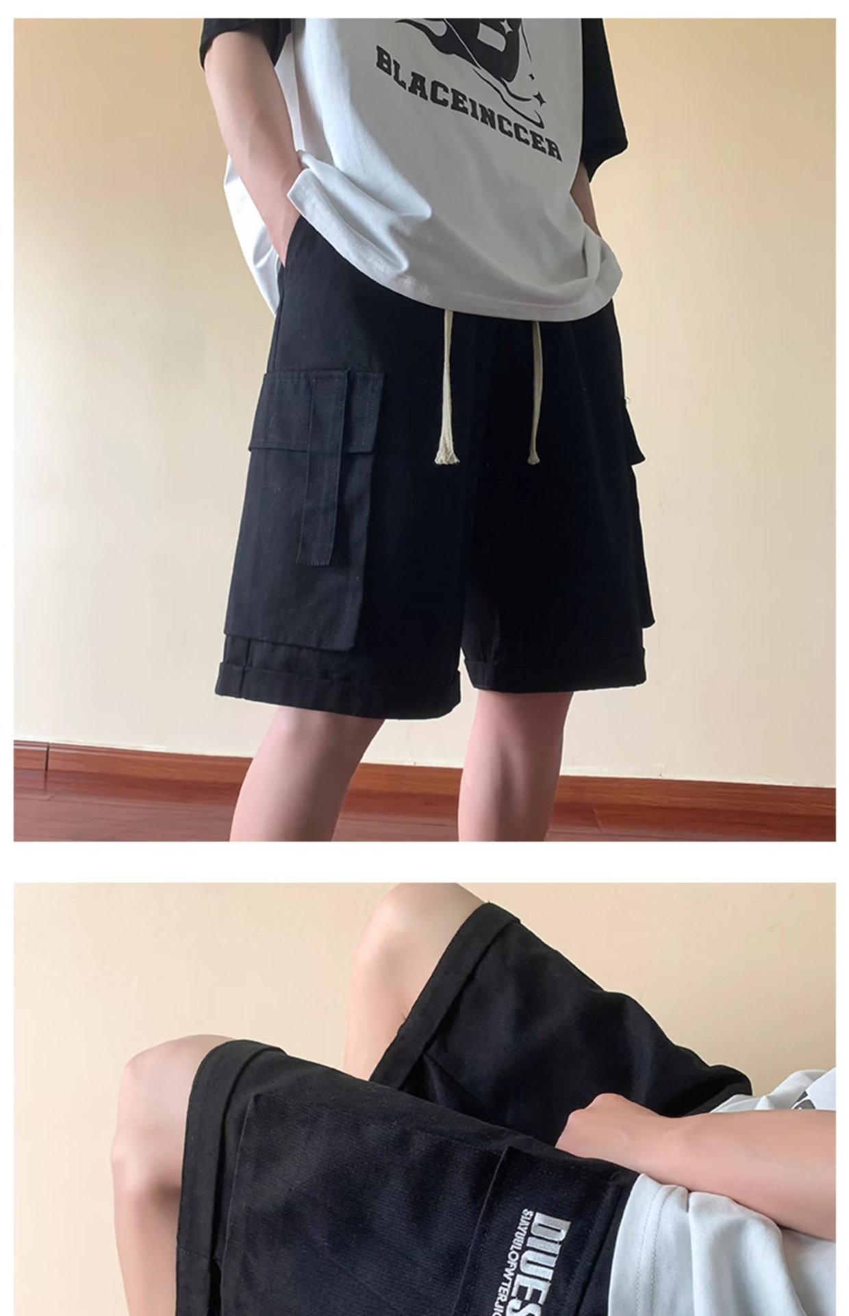卡其色工装短裤男士夏季日系宽松休闲中裤潮牌刺绣多口袋五分裤子