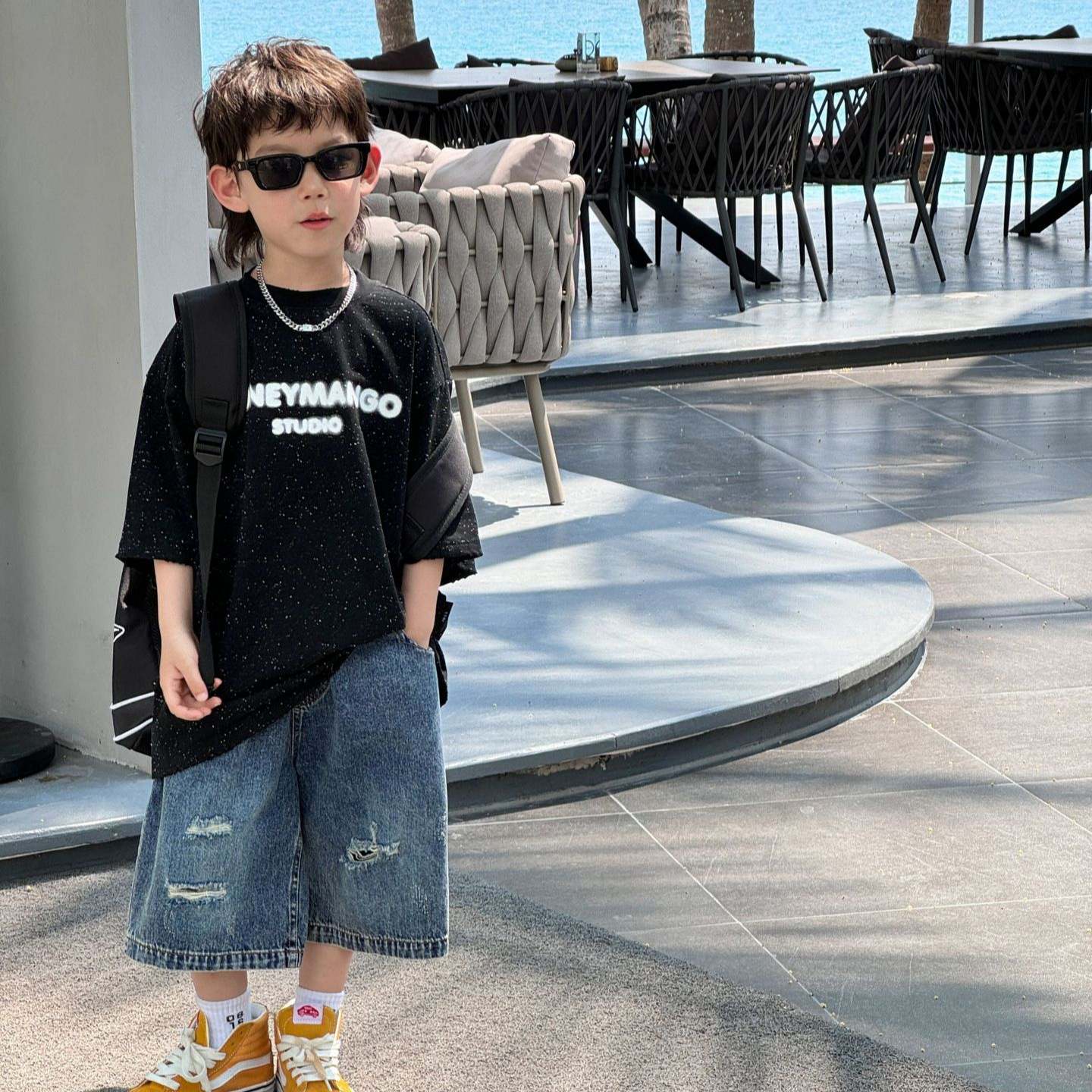 泰如夏季新款韩版百搭奥利奥字母设计感短袖儿童T恤时尚潮