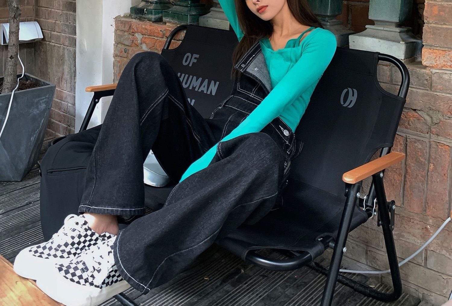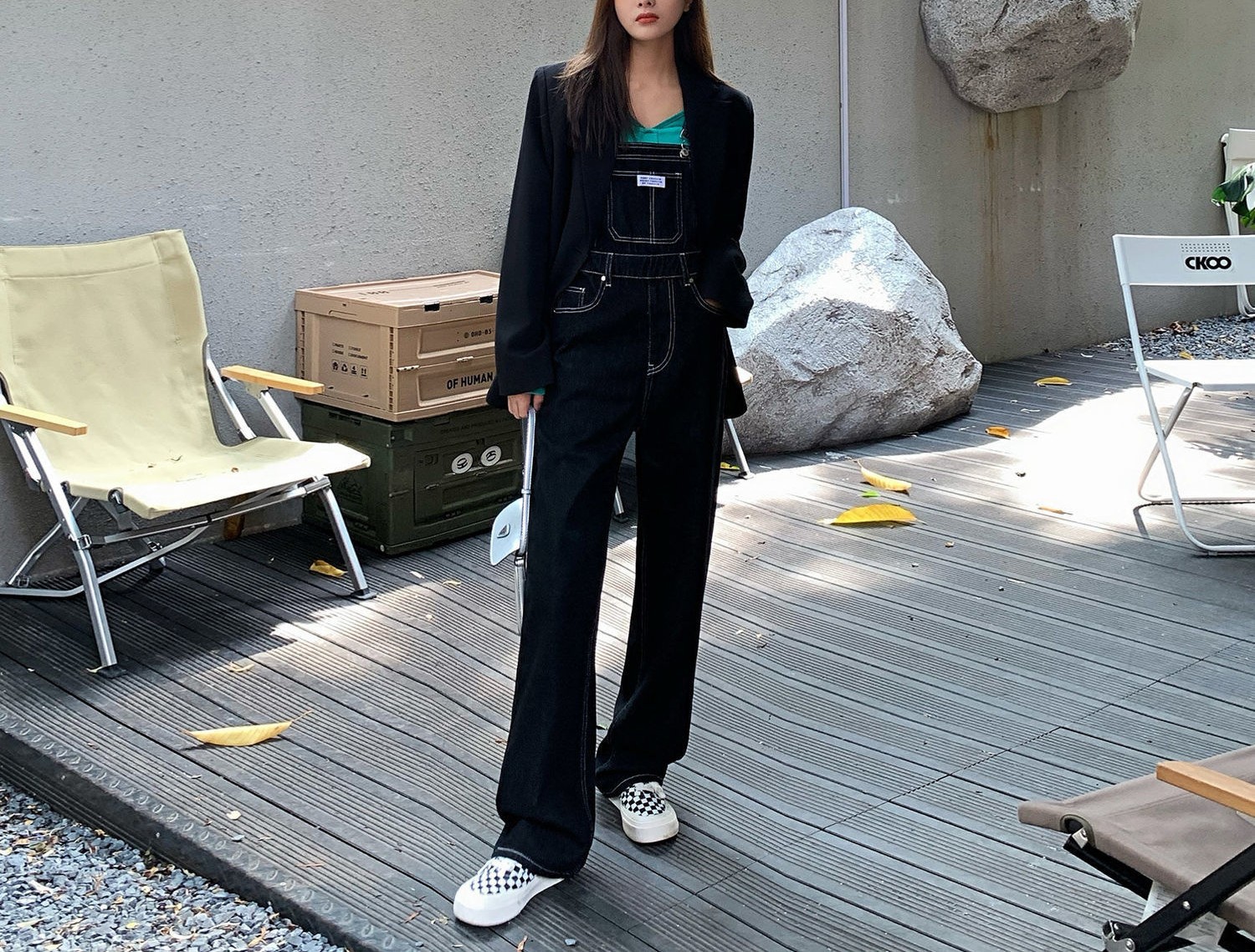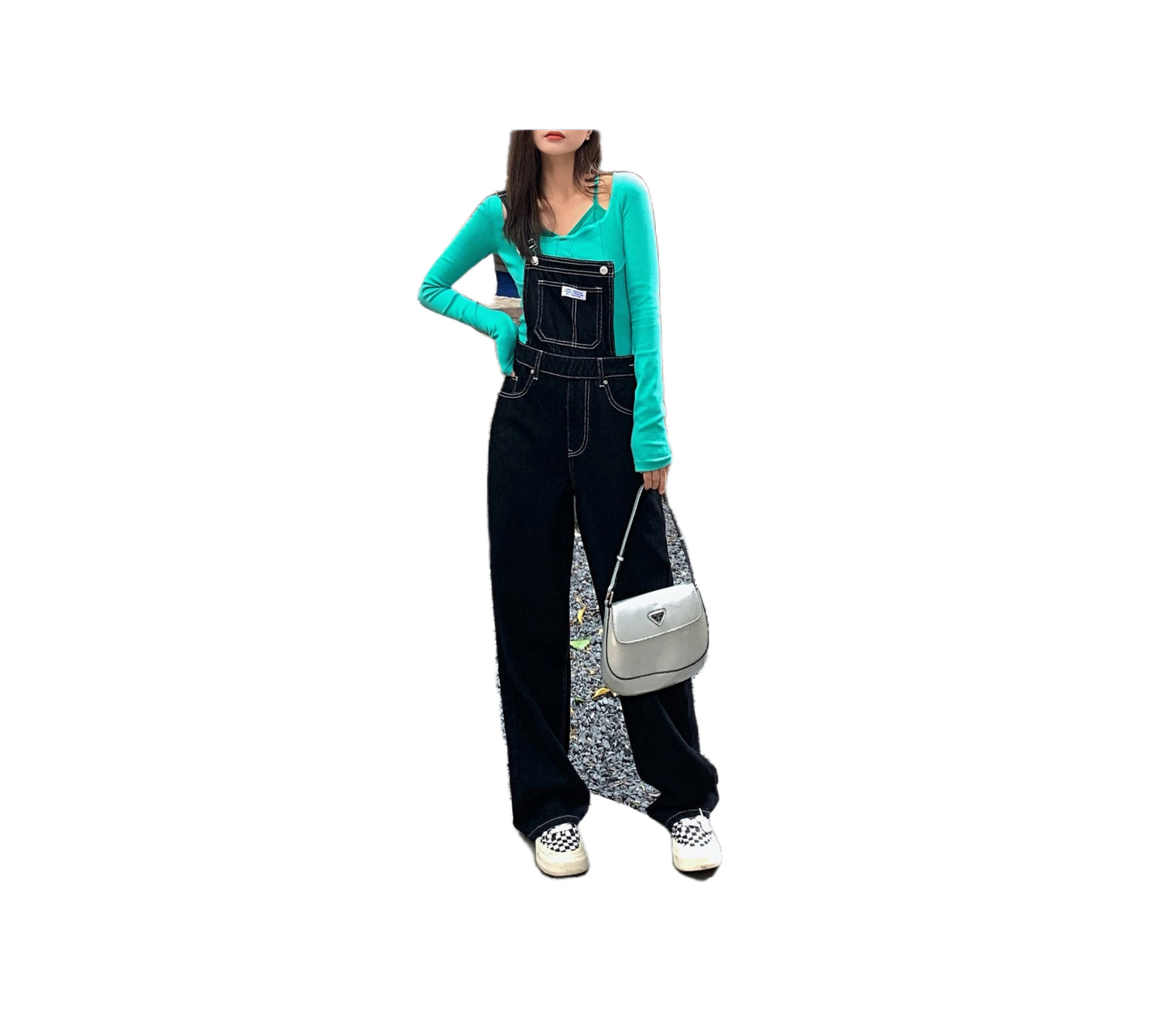 牛仔背带裤女拖地春夏季新款高腰显瘦减龄宽松黑色连体裤长裤