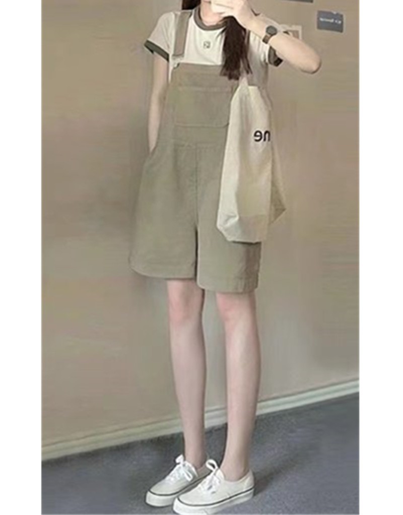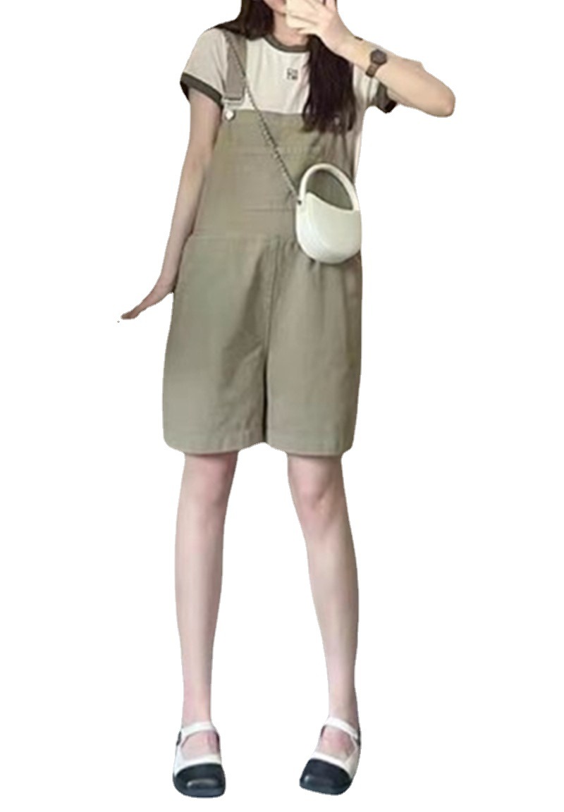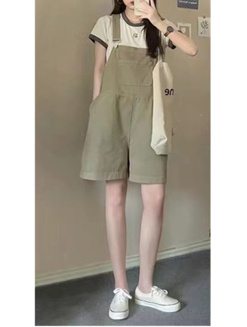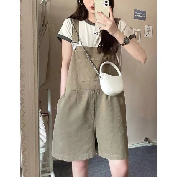 牛仔背带裤女夏小个子薄款新款胖mm减龄显瘦休闲阔腿五分短裤