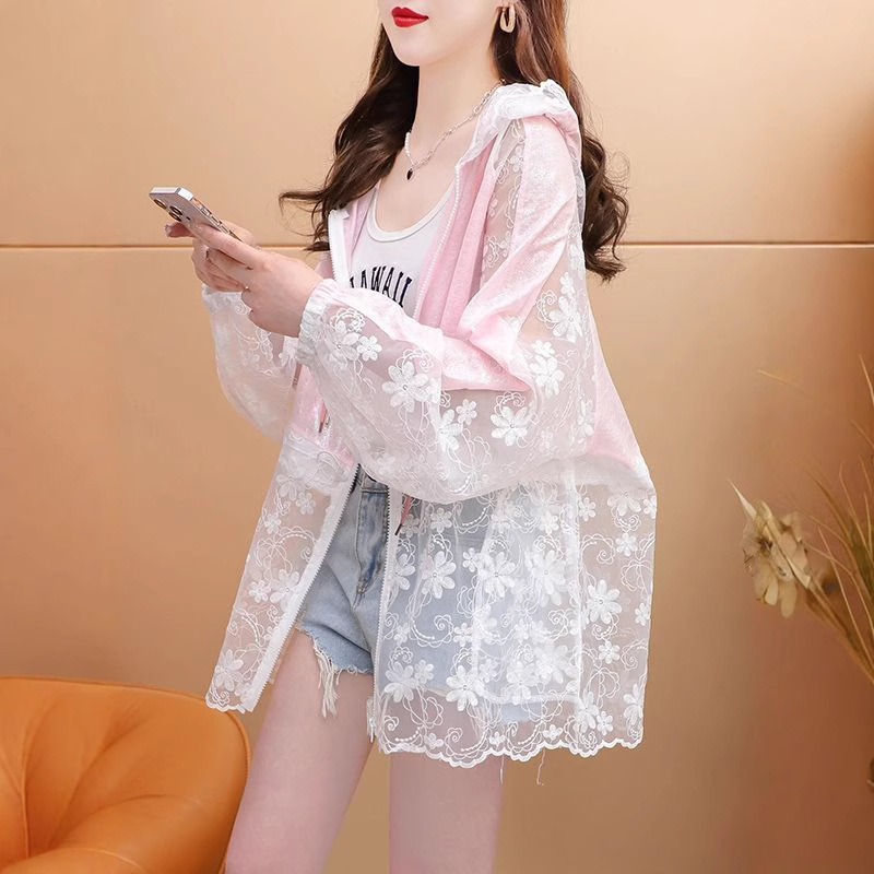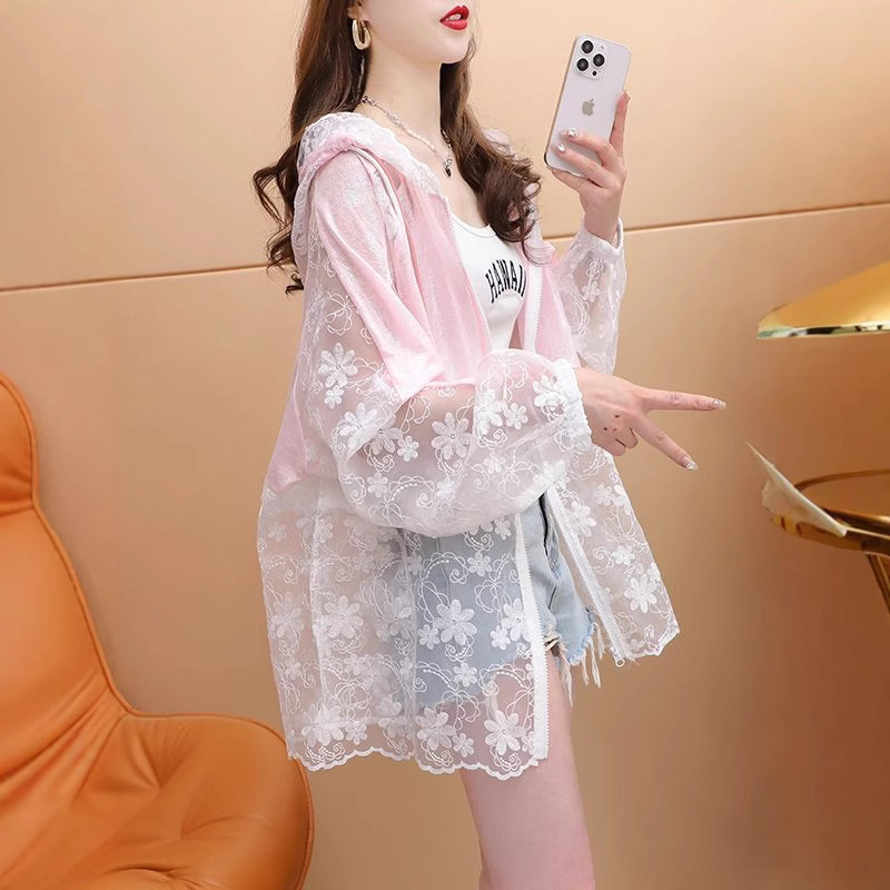 亚马逊出口热销彩虹色反光布大码连帽蕾丝拼接薄款宽松连帽开衫潮