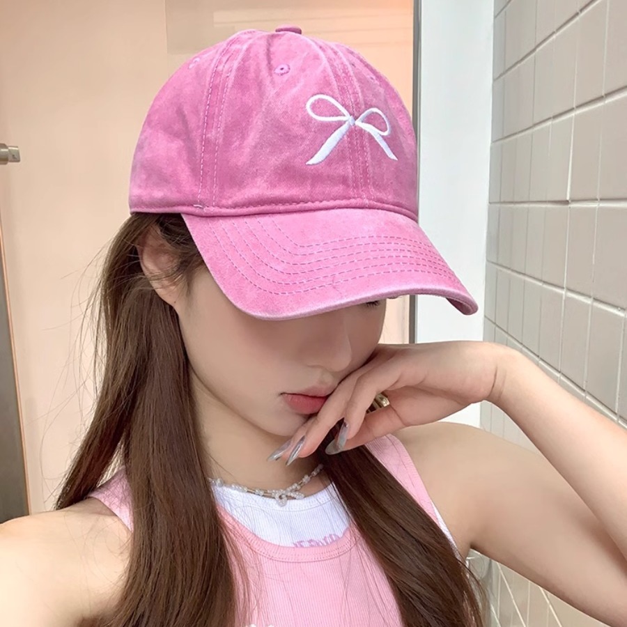 蝴蝶结水洗面料粉色棒球帽子女新款鸭舌帽大头围宽檐显脸小